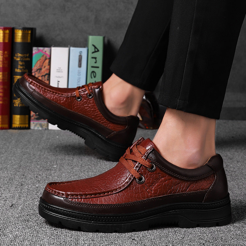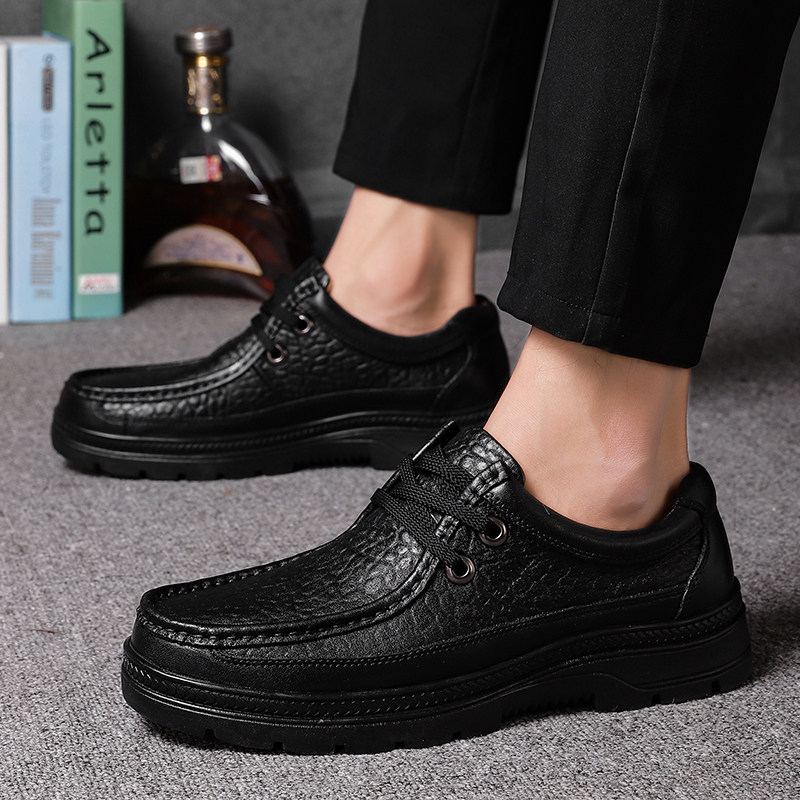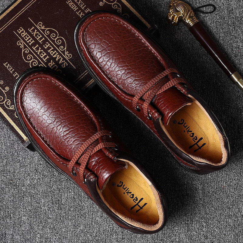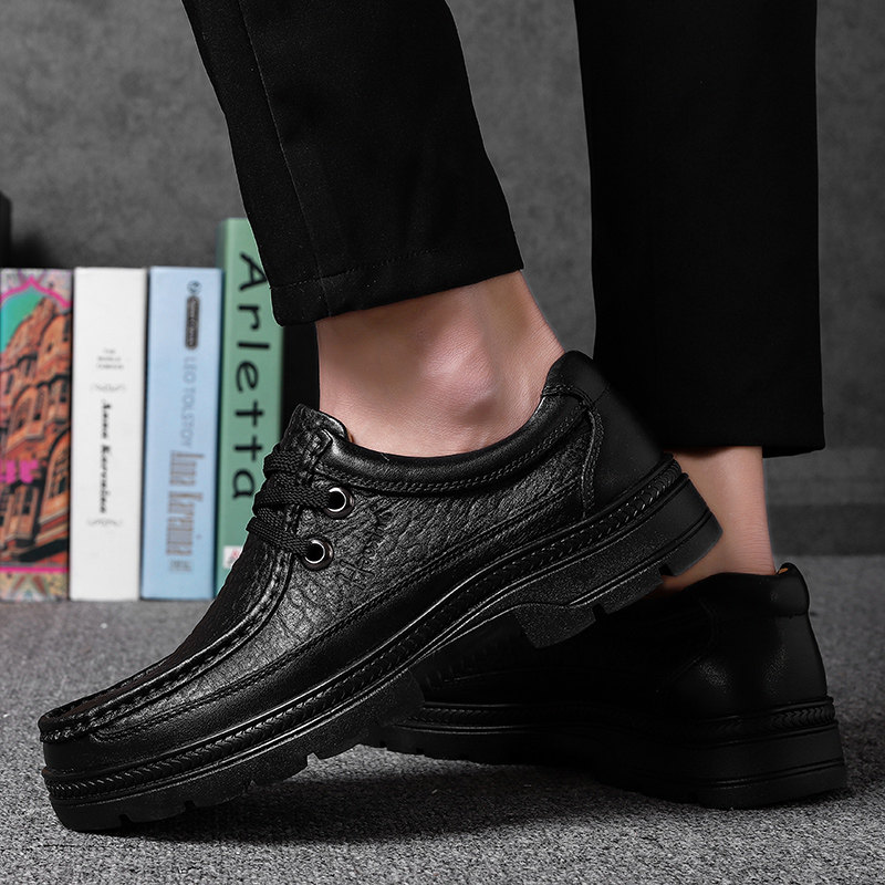HUMAN LIFE men's shoes spring and autumn new thick - sole business leisure shoes 45 men's real leather large number 46 middle - aged daddy shoes