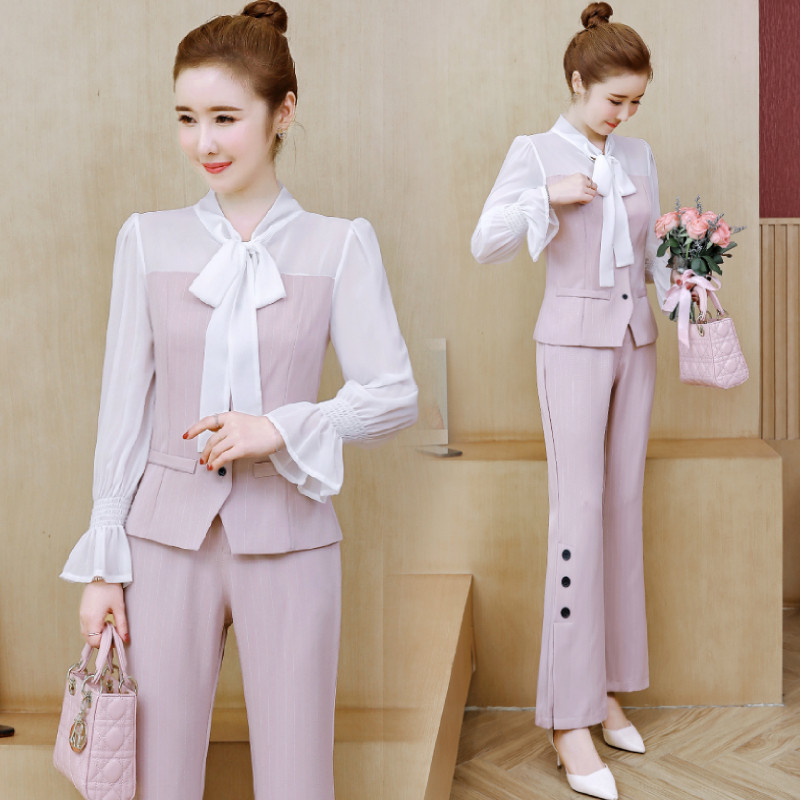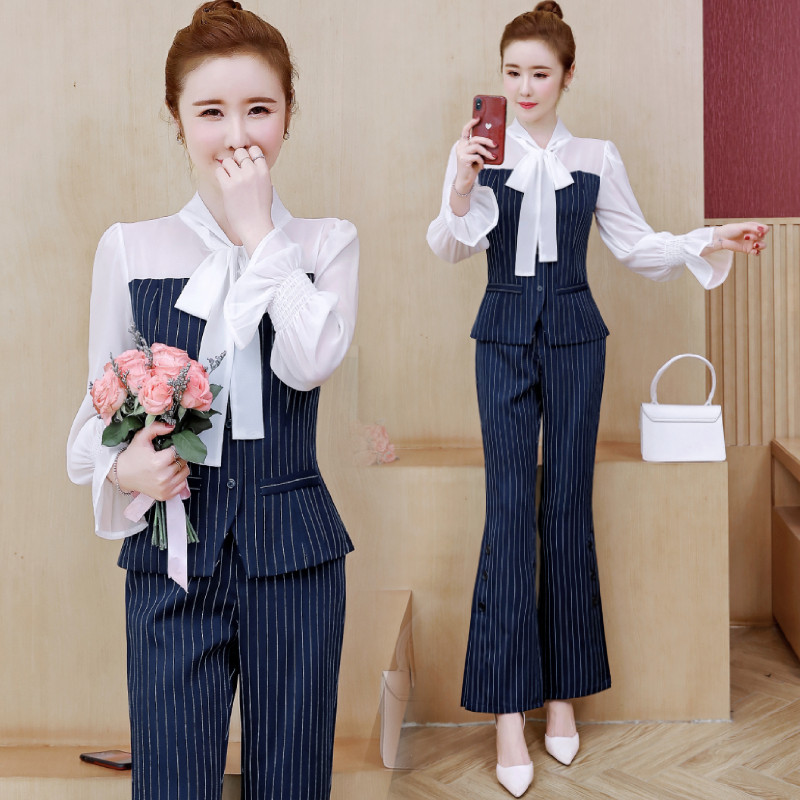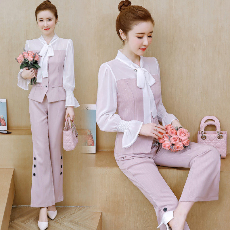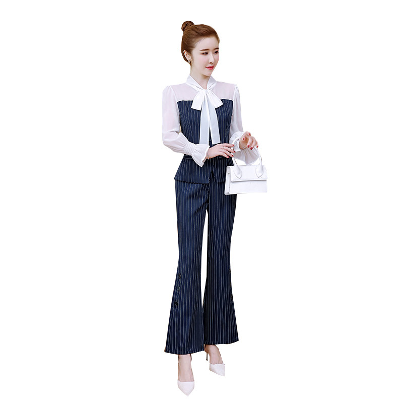 Spring and Autumn 2020 New Fashion Suit Temperament Goddess Fan Clothes Striped Casual Pants Slim Two-piece Western Style