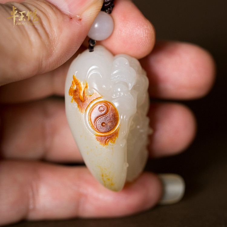 (Zhuoyu Pavilion) Tianrui Shipping Xinjiang Hetian jade seed material suet grade red skin and white meat single seed pendant Li Zhuo