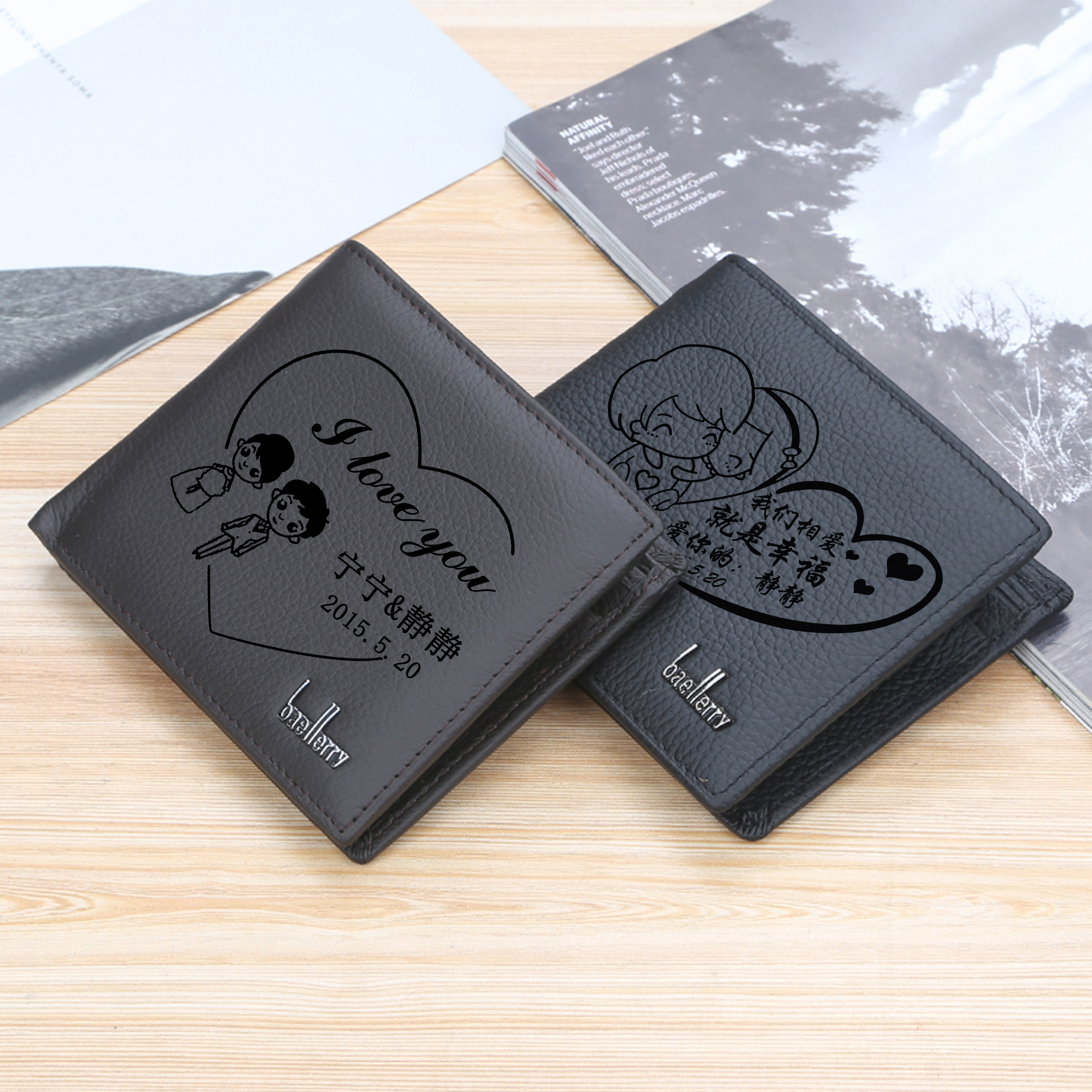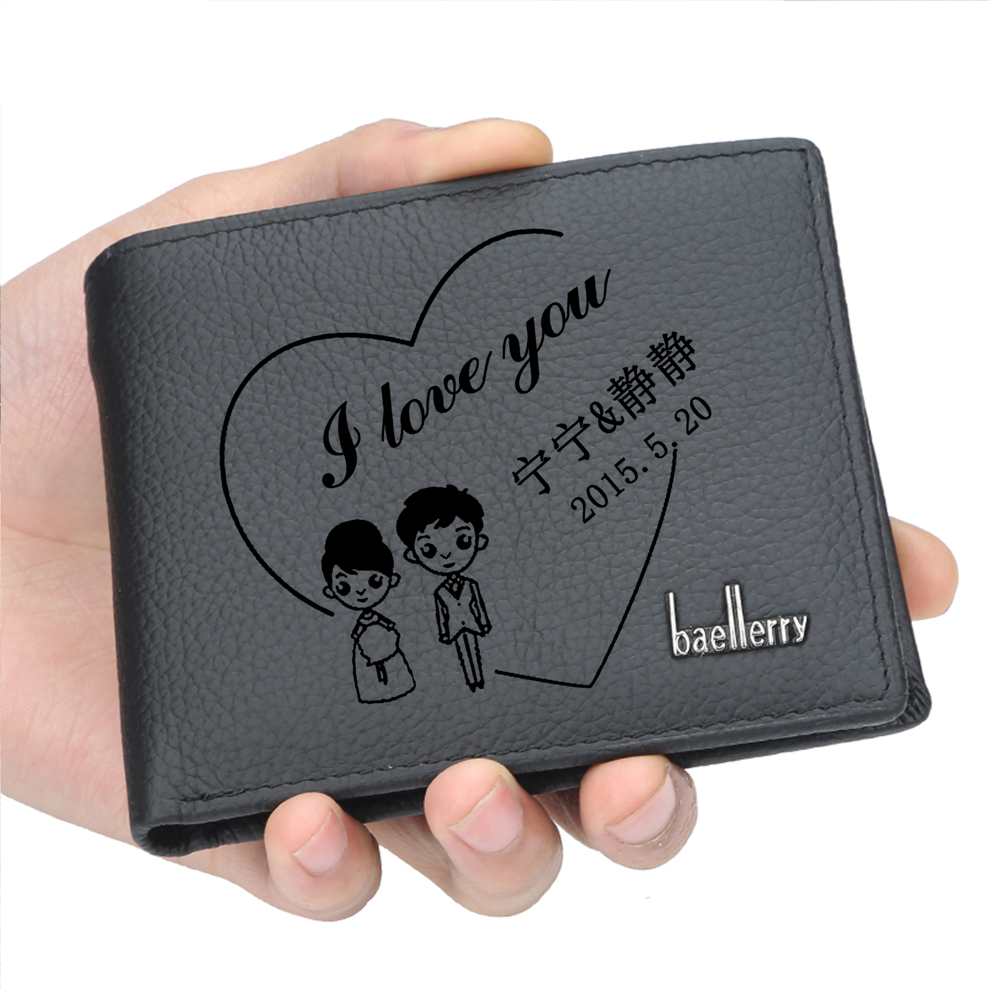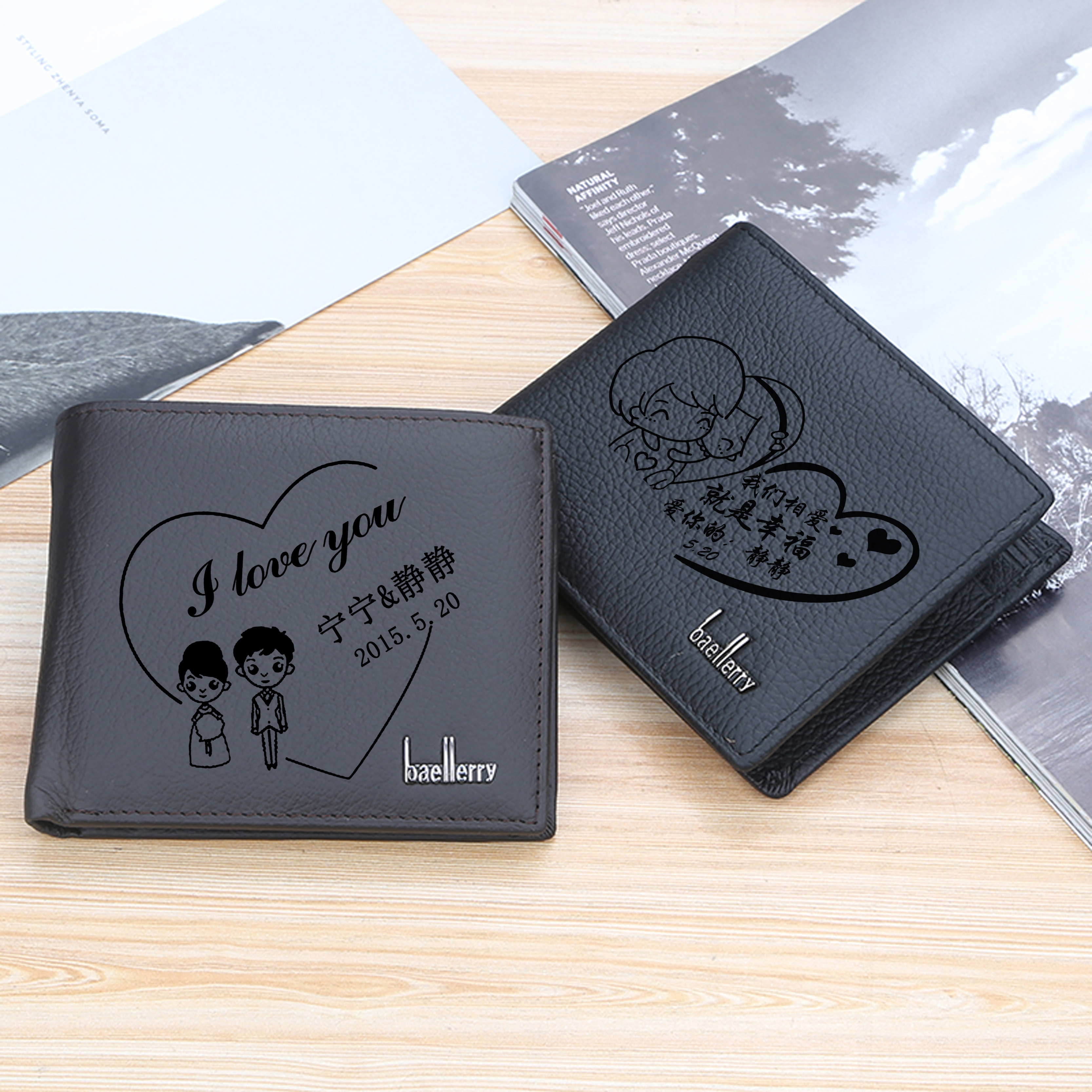 Custom Wallet Men's Short Leather Lettering Leather Clip Korean Version Color Clay Sculpture Huawei Xiaomi Pastry Store