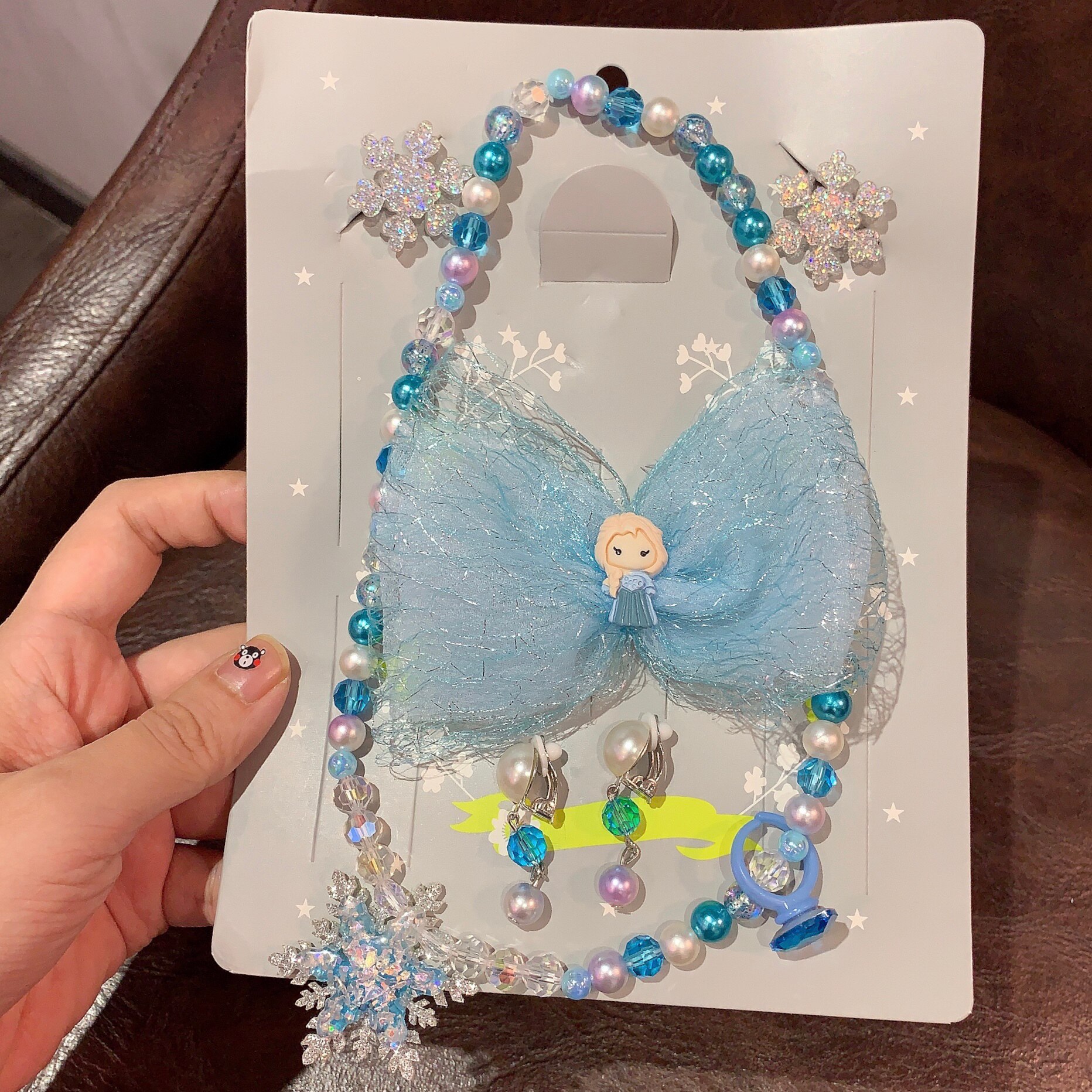 Outlet Japan Girl Ice And Snow Princess Sparkling Gem Necklace Earrings Set Group Baby Gig Accessories for Children's Gift