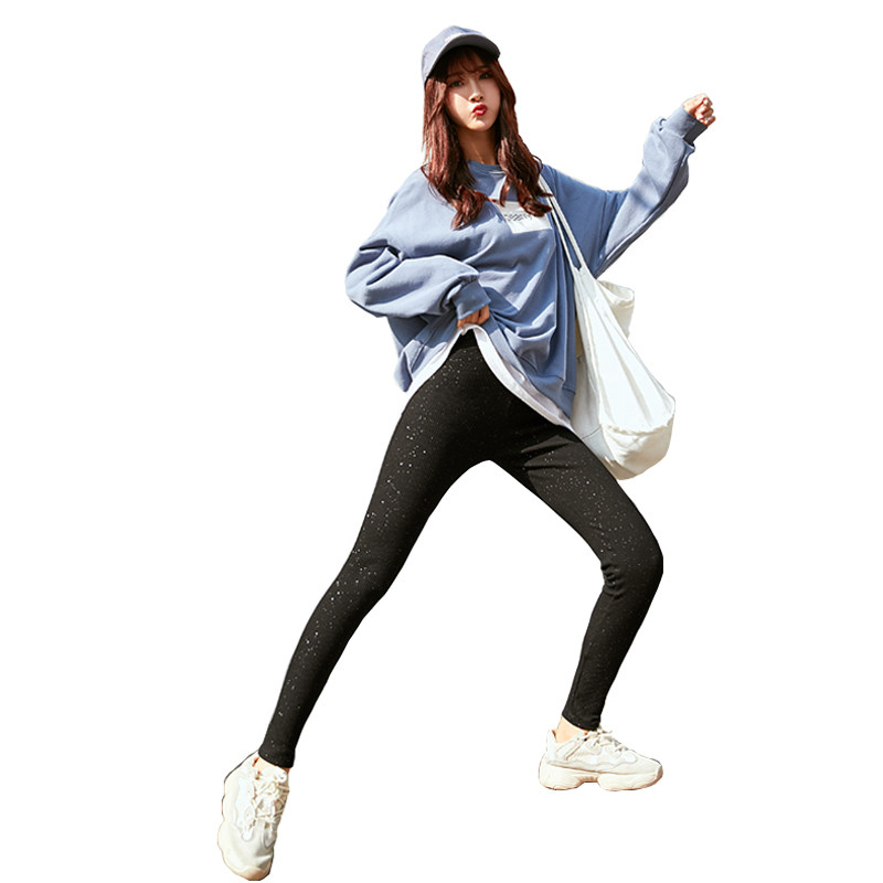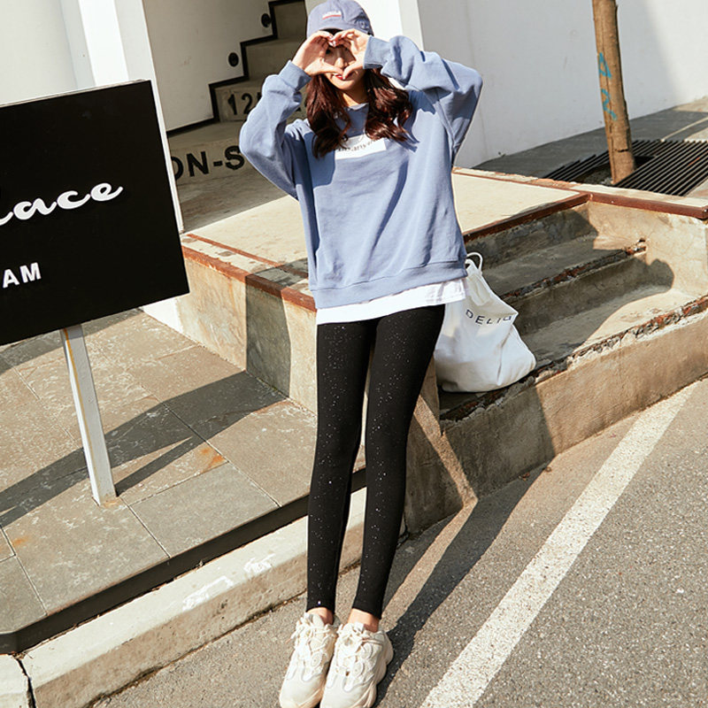 Spring and autumn inner lap pants female outside wearing display slim pure cotton high waist black shiny elastic winter workout 90% little leggings pants