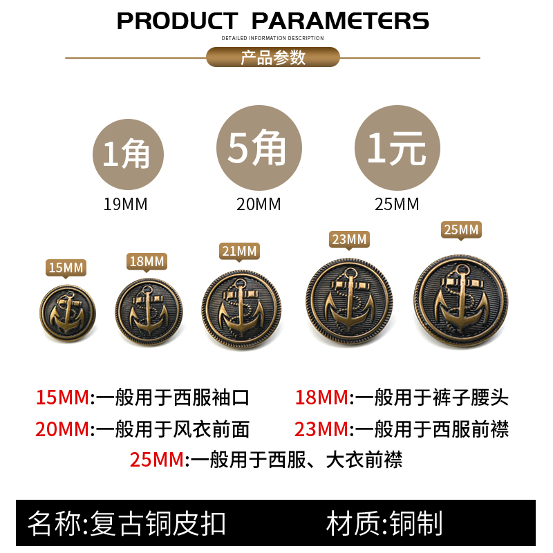 Ingléon Wind with children Big coat button Delicate Jacket Man 100 lap metal Fashion retro blouse Round Clothes Buckle