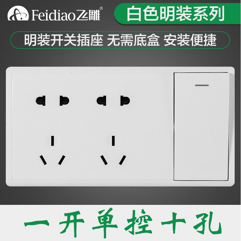 Flying Engraving M-open Single-control ten-hole switch with socket panel Home Single open with two bits 5 holes 5 holes