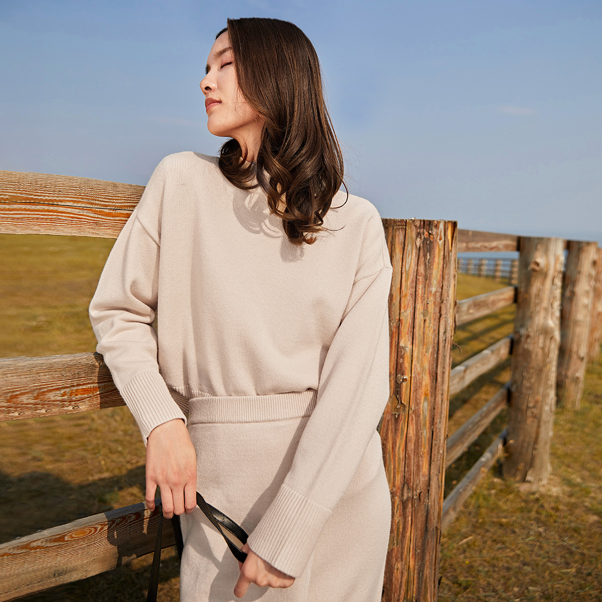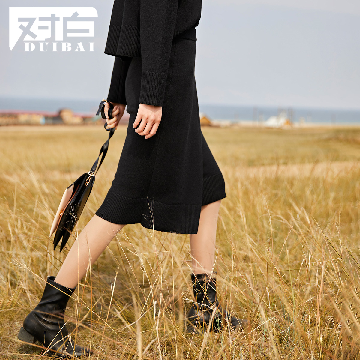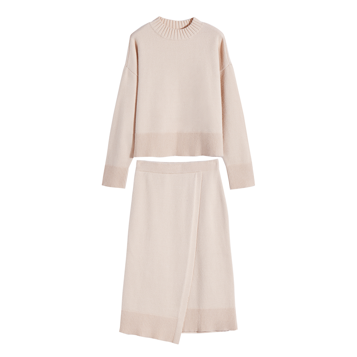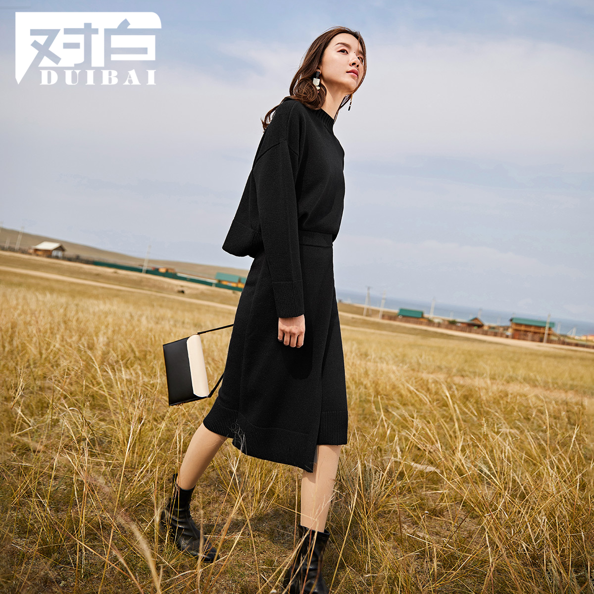 Pair of white temperament knitted suit female winter style Lazy Wind Fashion small crowdleader sweater half-body dress two-piece style suit