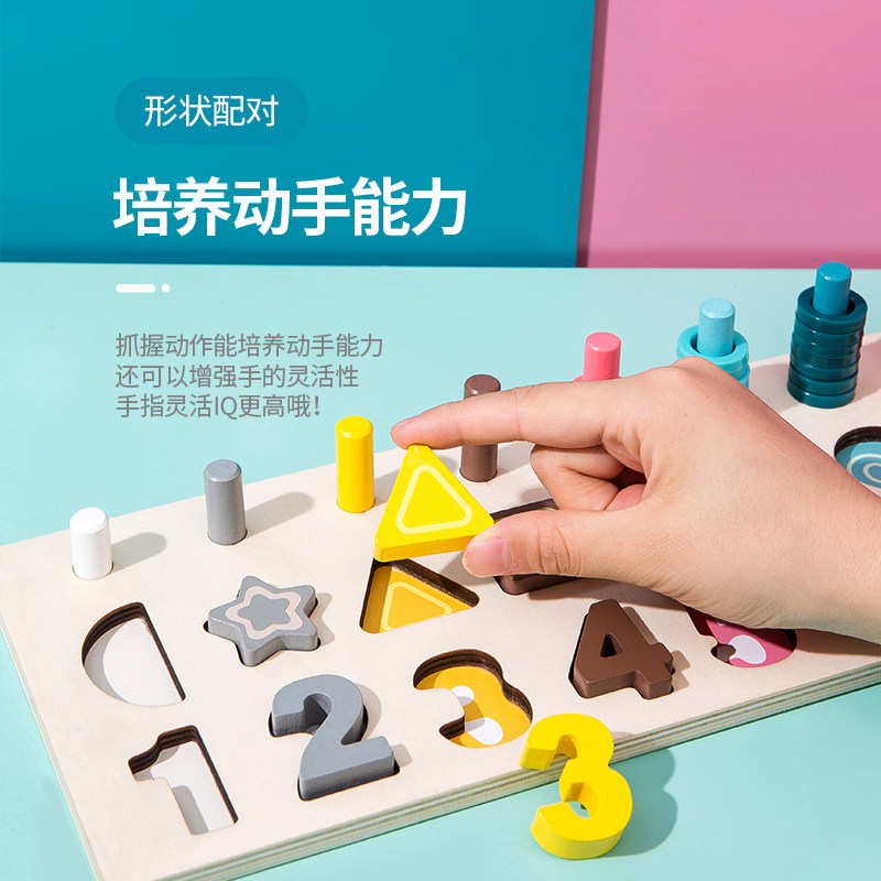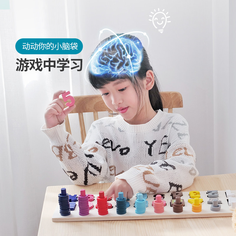 5 Hop 1 Puzzle Plate Percussion 3 Hop 1 pairing version (digital color ring fruit) Lift the baby's awareness of shape space color digital operation logic etc. 5 Hop 1 Puzzle Board Knocks