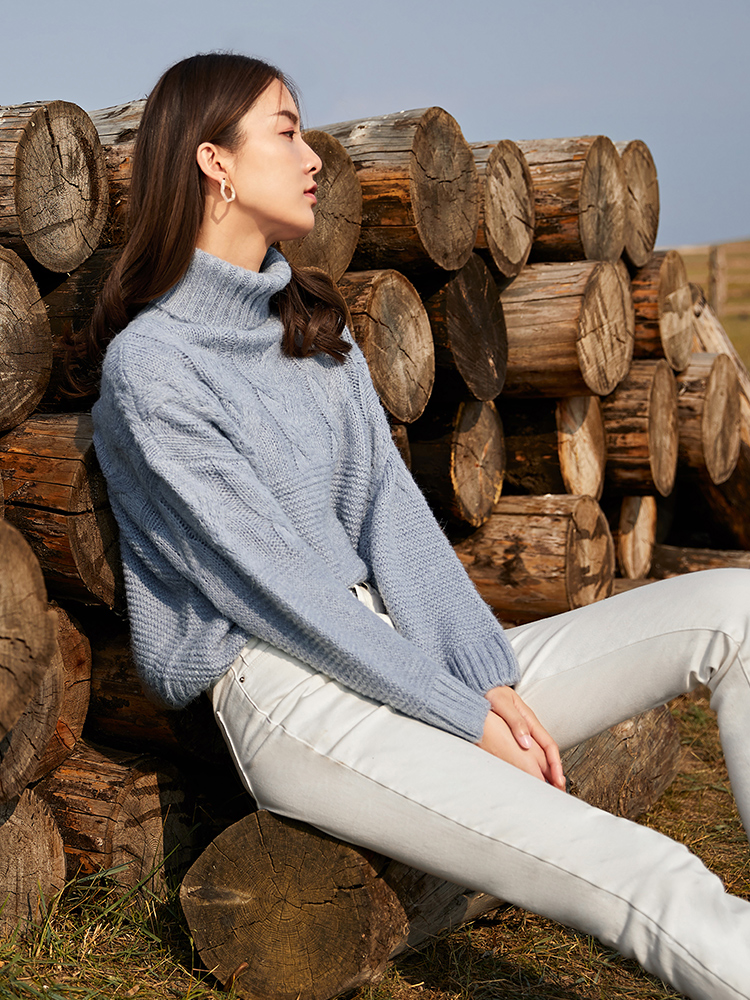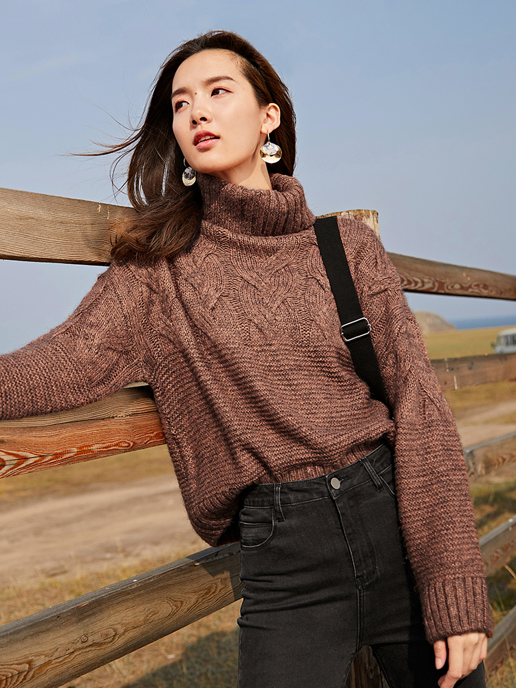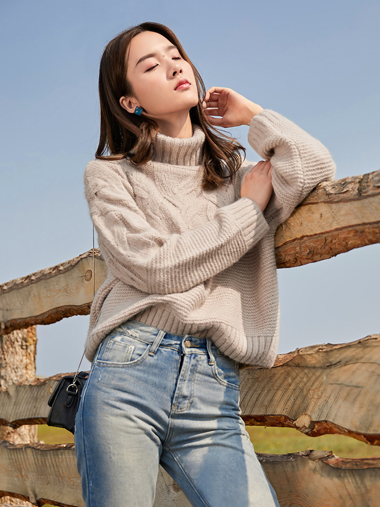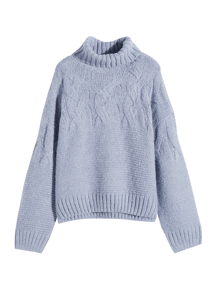 White turtleneck pullover women's sweater lazy wind winter style retro twist thickened loose sweater D2