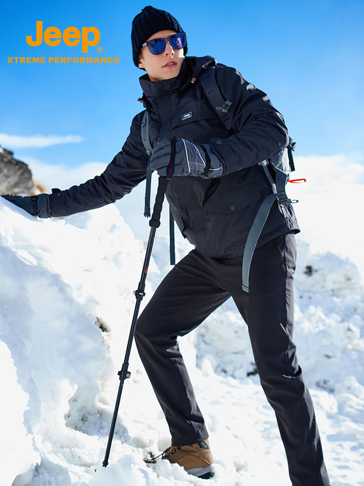 Jeep soft shell assault pants pants men's pants men's trousers waterproof autumn and winter windproof mountaineering outdoor plus velvet thickened fleece