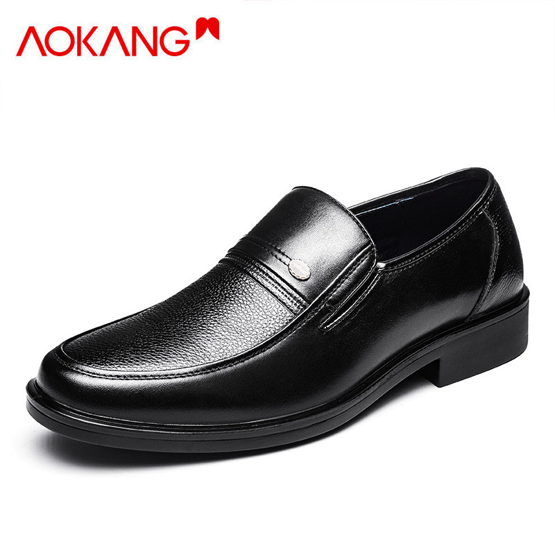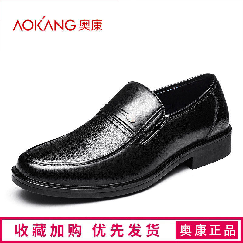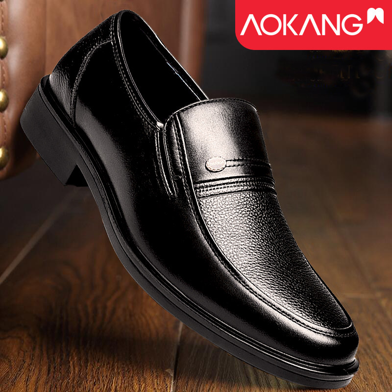 Okonpie men's leather shoes business dress leisure black soft sole old man autumn daddy shoes