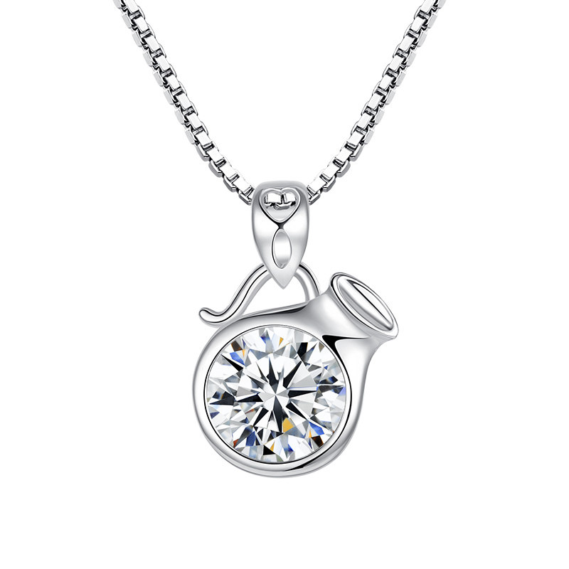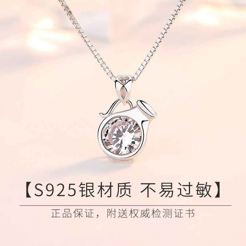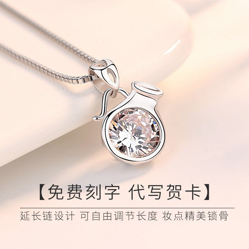 twelve Constellation Necklace Pure Silver Female Water Bottle Holder Guardian Stone Pendant 520 Valentine's 520 gift to girlfriend