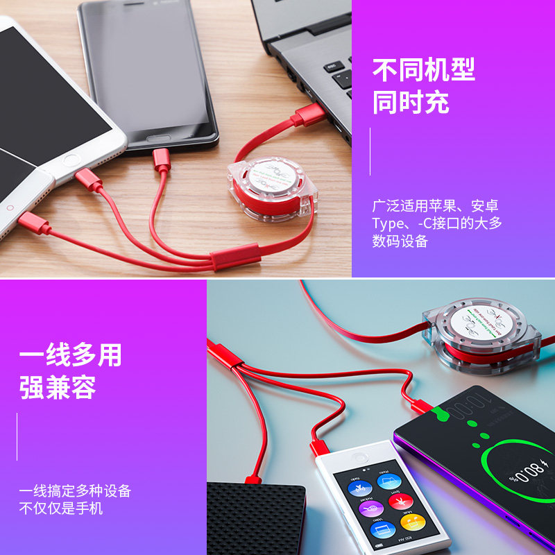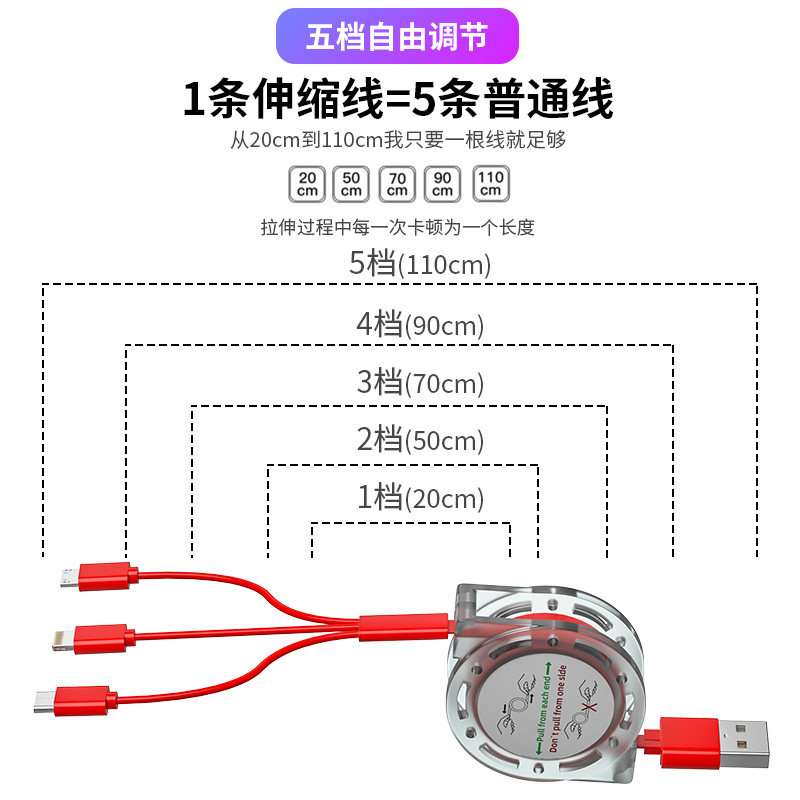 Telescopic one-to-three (Phantom Black) 1-meter standard version (60% speed increase, charging without damage to the machine) Telescopic one-to-three (China Red) 1-meter standard version (60% speed-up, charging without damage to the machine) Telescopic
