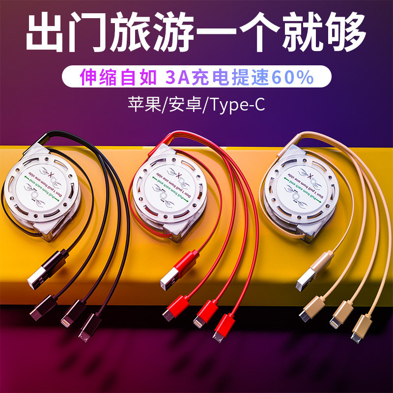 Three-in-one data cable retractable charging cable one for three Huawei type-c fast charging is suitable for Apple Android multi-function car multi-purpose retractable vivo mobile phone millet fast punch oppo