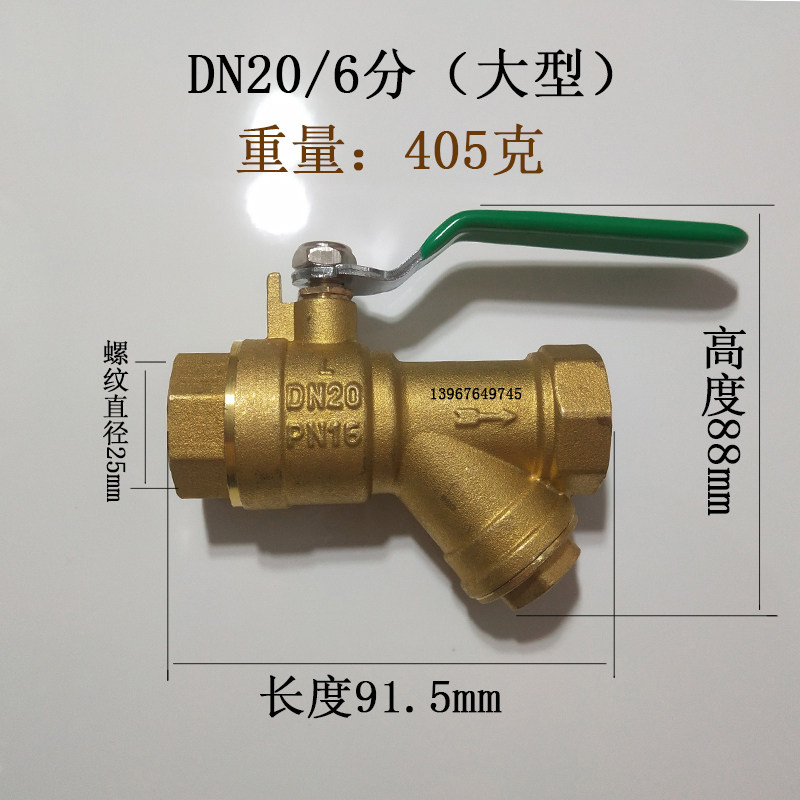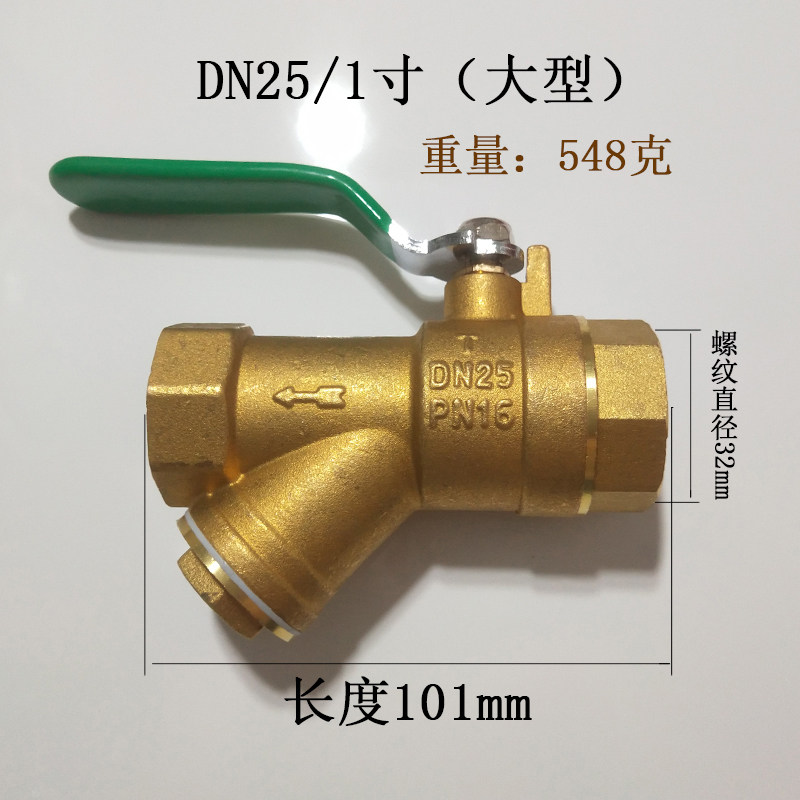 Water distributor warm up type filter ball valve thickened integrated copper valve 6 points 1 inch DN20 25 tap water switch