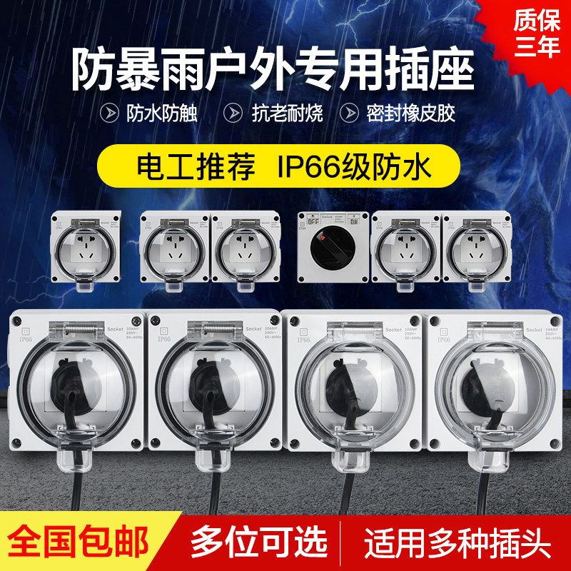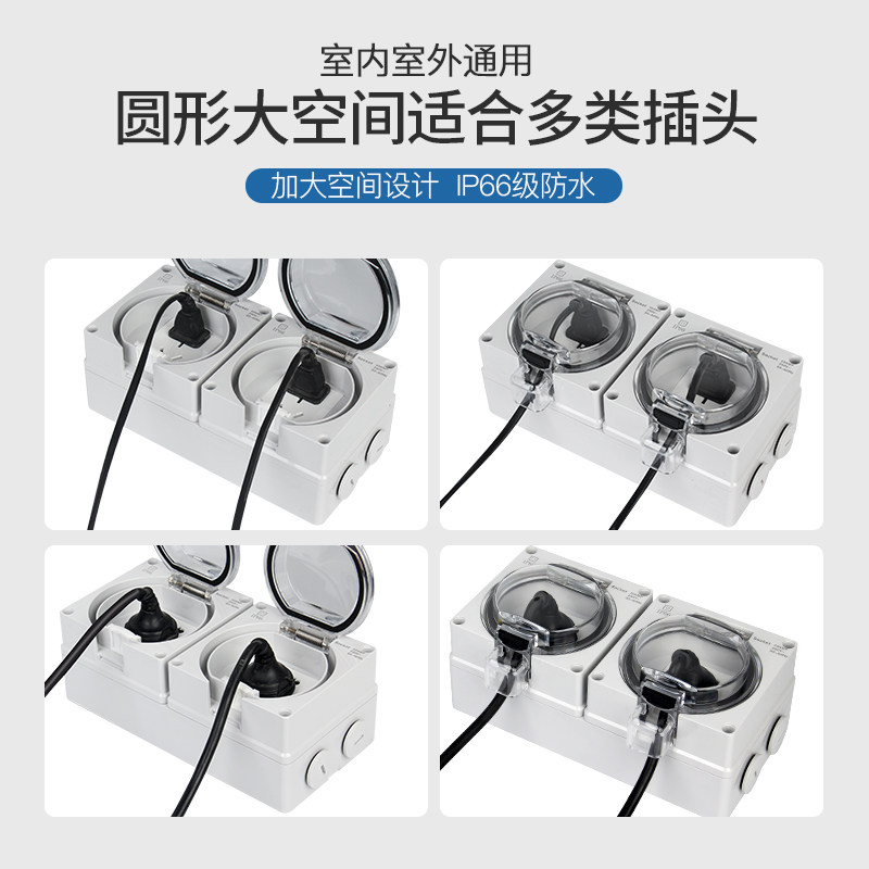 OUTDOOR WATERPROOF SOCKET CLEAR FIT POWER TWO-ROW POSITION FIVE-HOLE ANTI-RAINSTORM HOOD ROW-INSERT OUTDOOR BALCONY RAIN-PROOF BOX SEAL