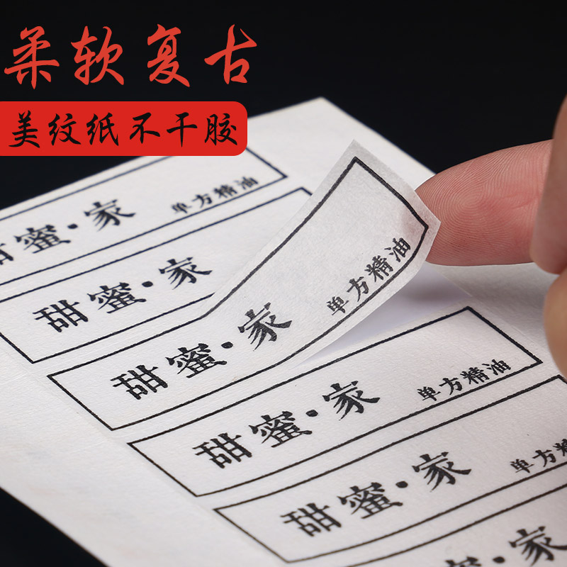 Special paper self-adhesive custom label stickers water pattern high-grade rough grain art bottle stickers printing customization