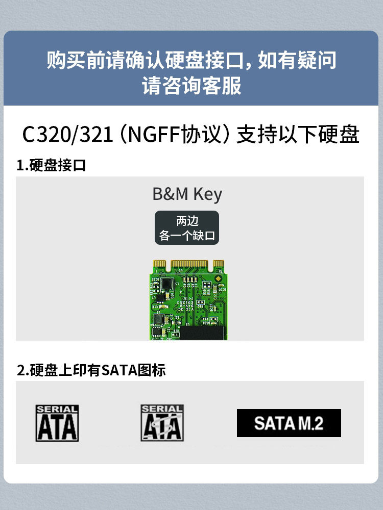 Gray NGFF high-speed version with free adapter (SATA interface) C320 Gray NVME fast version with free data cable (pcie interface) C325 Deep space color NGF