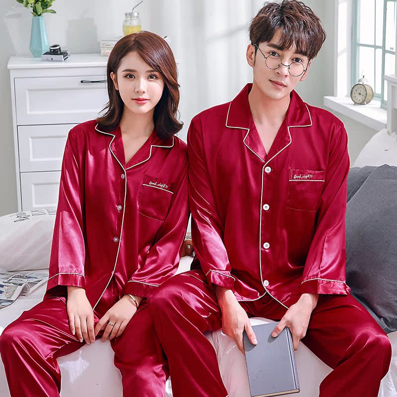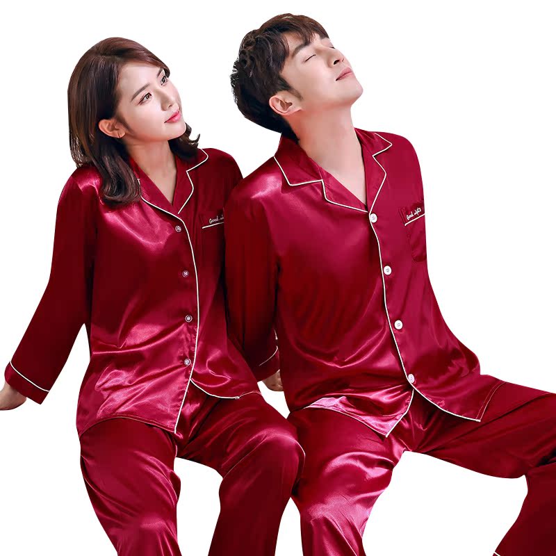 Autumn winter new large red pyjamas men and women married long sleeves silk New wedding celebration lovers Spring and autumn home suits suit