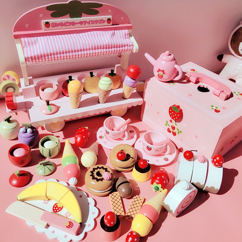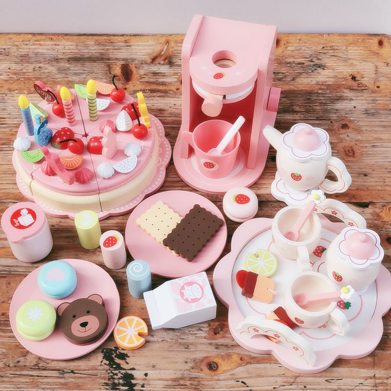 Girl 61 gift children's simulation cake candy Afternoon tea Dress up wine little princess Wooden toy 3-6 years old 2