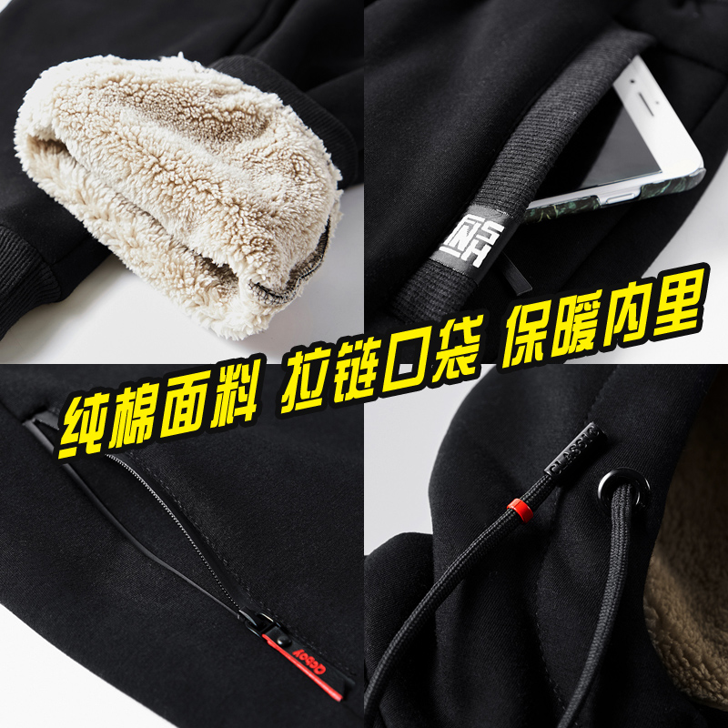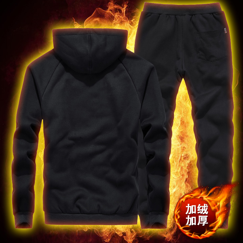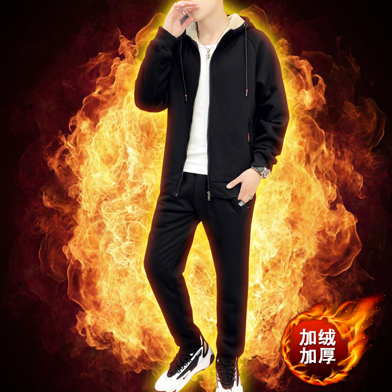 Autumn and winter lamb suede with cap sports shirt sports suit men's size Thickened And Warm Sportswear Casual Winter Clothing