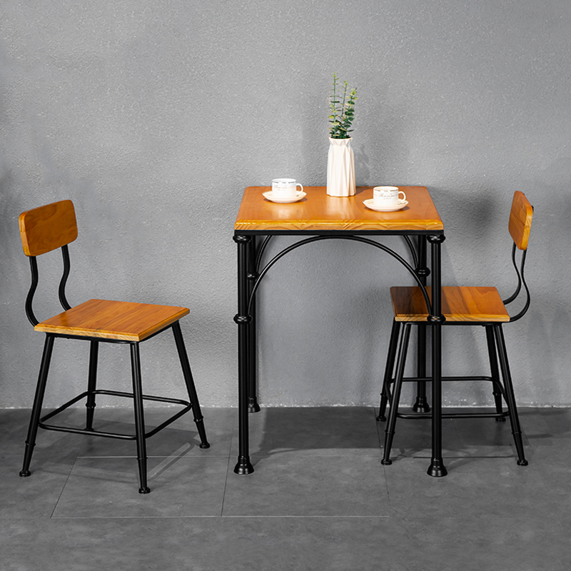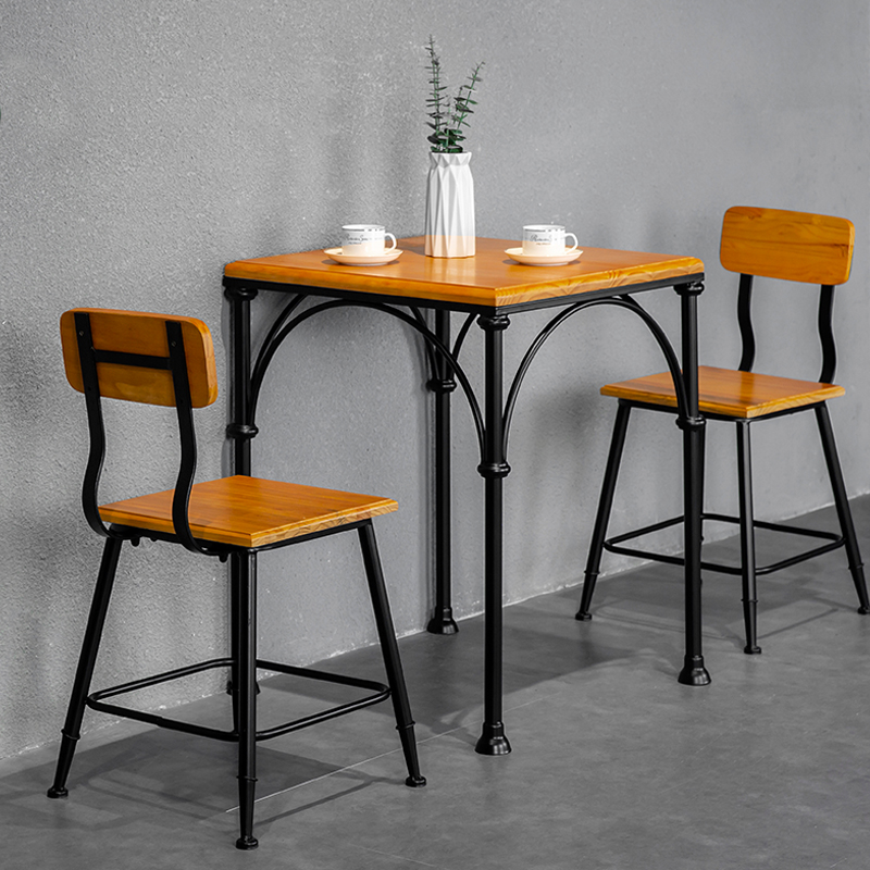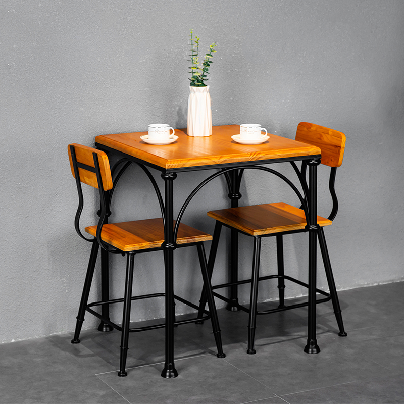 45cm solid wood backrest small square stool Wrought iron solid wood small square table 60*60*75*3 cm Wrought iron solid wood small square table 2 solid wood backrest small square stool custom special shot