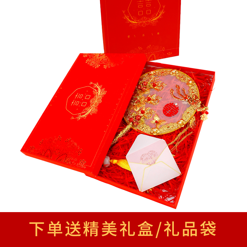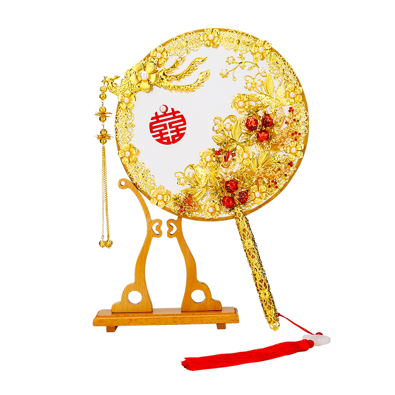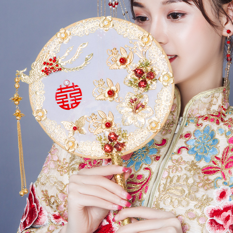 Bridal fan ancient style Xiuhe wedding wedding fan shaking sound with the same hollow happy fan wedding handmade diy material package