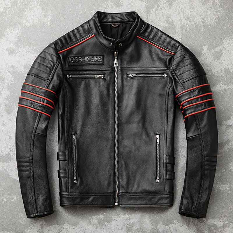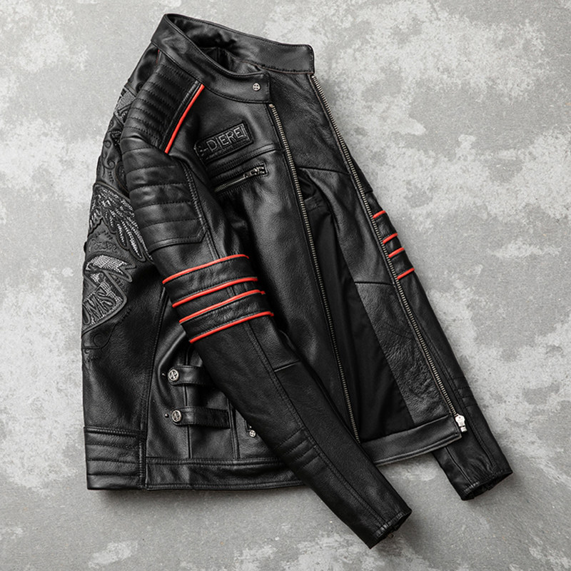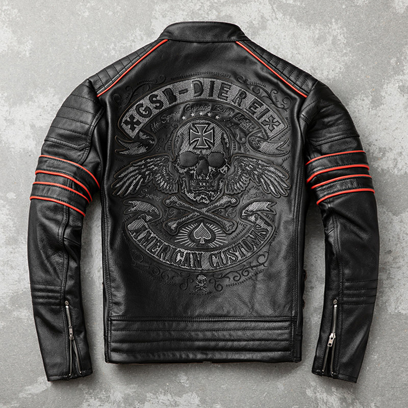 Hale New Head Layer Cow Leather Leather Leather Clothing Men's Pure Leather Jacket Locomotive Riding Clothing Embroidered Skull Head Tide