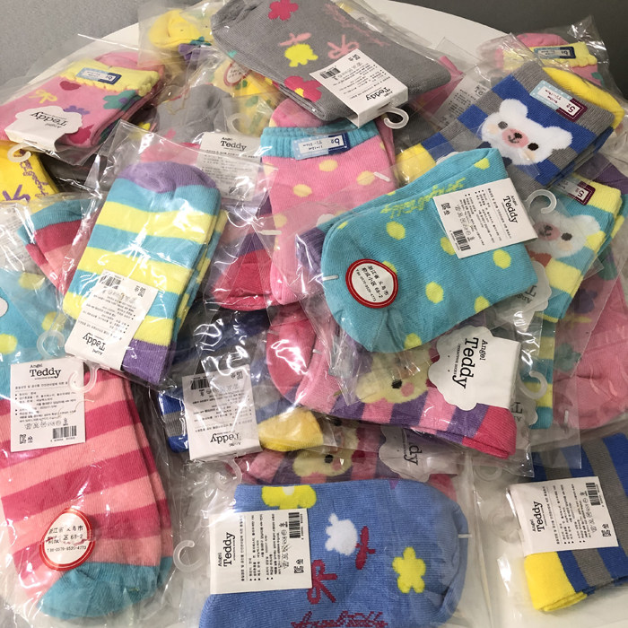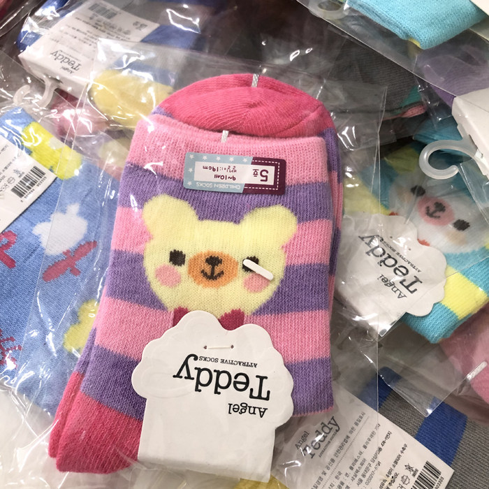 Korean version Qiuyu Children's Bao Cartoon Polychromatic Pure Cotton Middle Cylinder Small Bear Cute Girl Cotton Socks