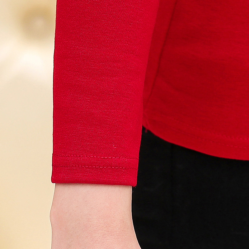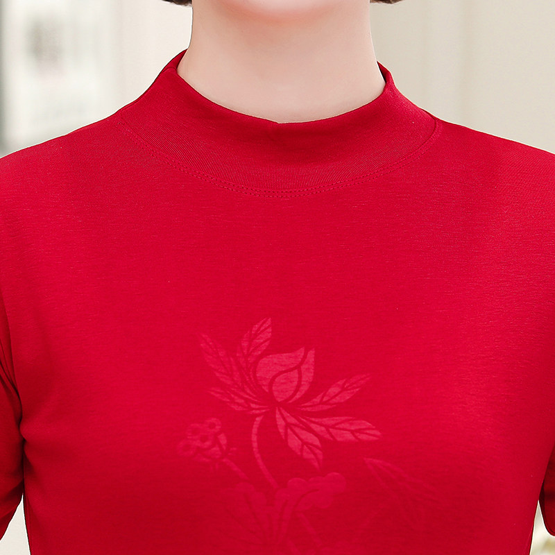 Middle-aged women's cotton half turtleneck long-sleeved T-shirt autumn mother's wear loose T-shirt top middle-aged women's bottoming shirt