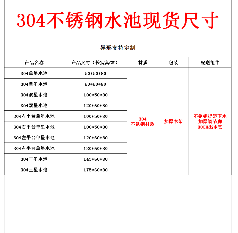 50 length*50 width*80 height Single trough 30460 long*60 width*80 height Single trough 304100 length*50 width*80 height double trough 304120 length*60 width