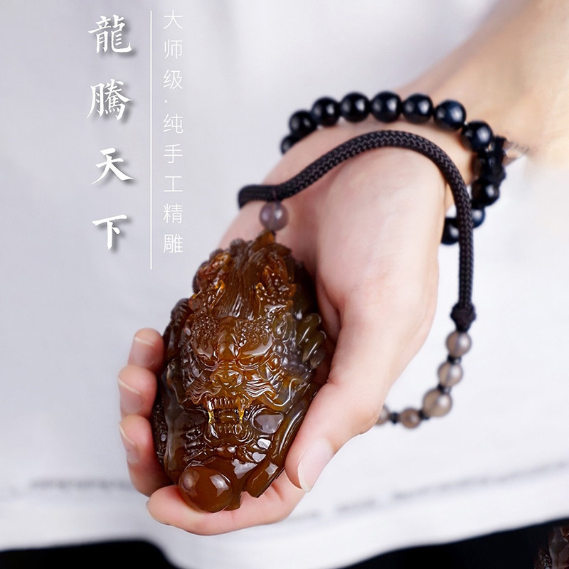 Great Master Class God Dragon Agao Jade Medullary Raw Stone Handlebar Piece Great Precision Work Finely Carved Hollowed-out Zodiac Dragon to Play Pieces Natural
