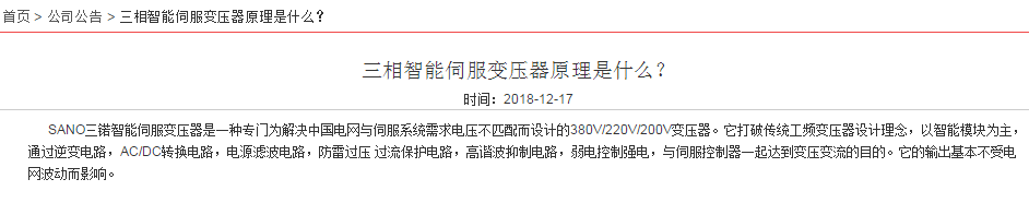 Sanno intelligent servo transformer SANO IST-C5-080 8KW output 220V three-phase