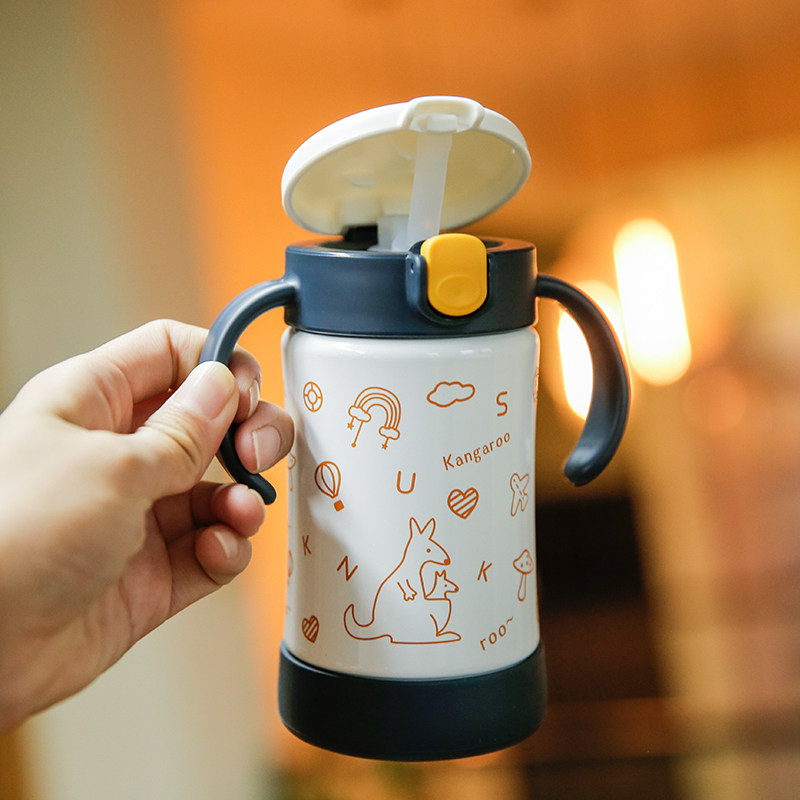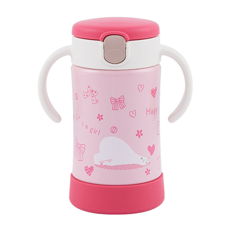 Japan Richel children's thermos cup with straw Male and female baby baby stainless steel cute cup Small portable