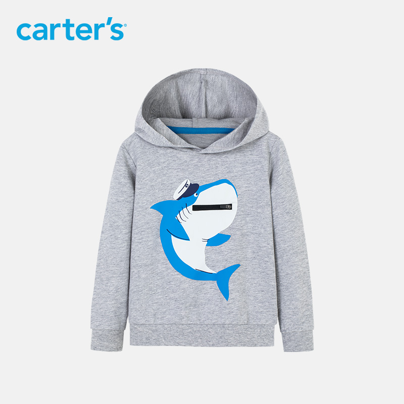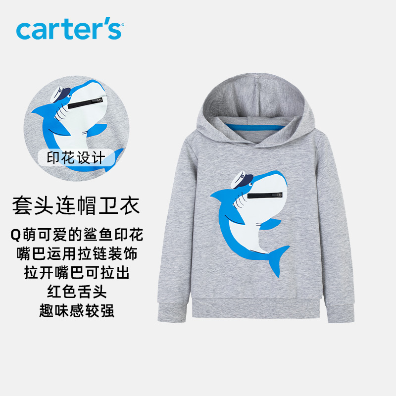 carters children's sweatshirt 2022 spring new boy long sleeve T-shirt baby even hat shark cartoon knit blouse