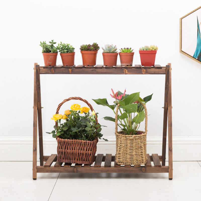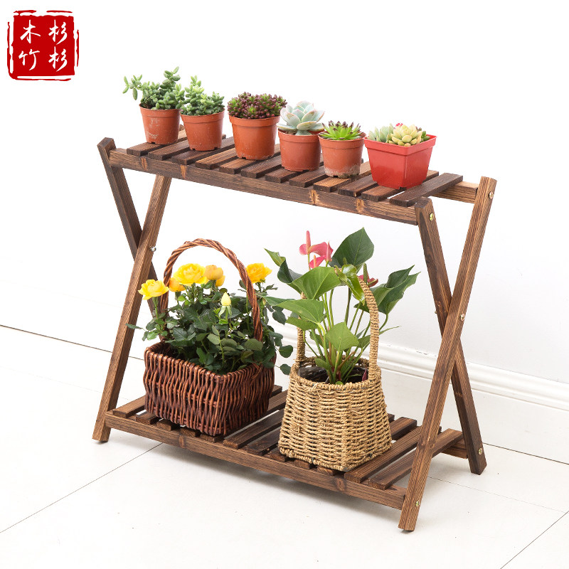 Solid wood flower stand wooden succulent X-shaped balcony living room indoor multi-layer flower pot rack left and right simple flower stand anti-corrosion wood
