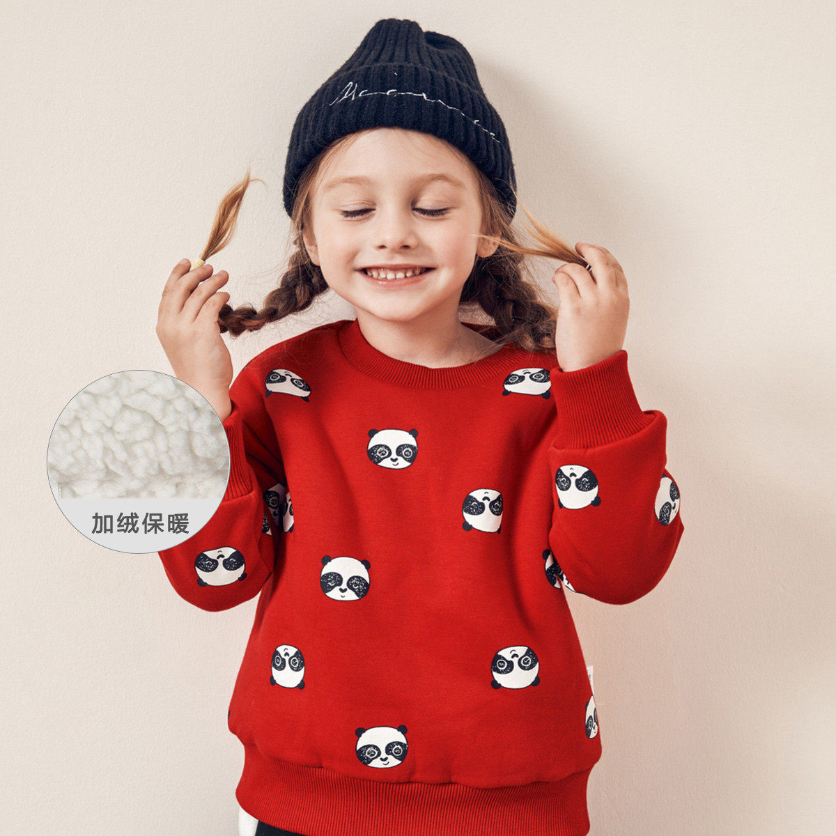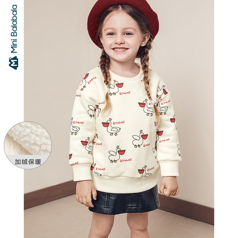 Mini Barabara girl's thick T-shirt Winter new clothing Baby Child plus lamb hair T-shirt Long sleeves