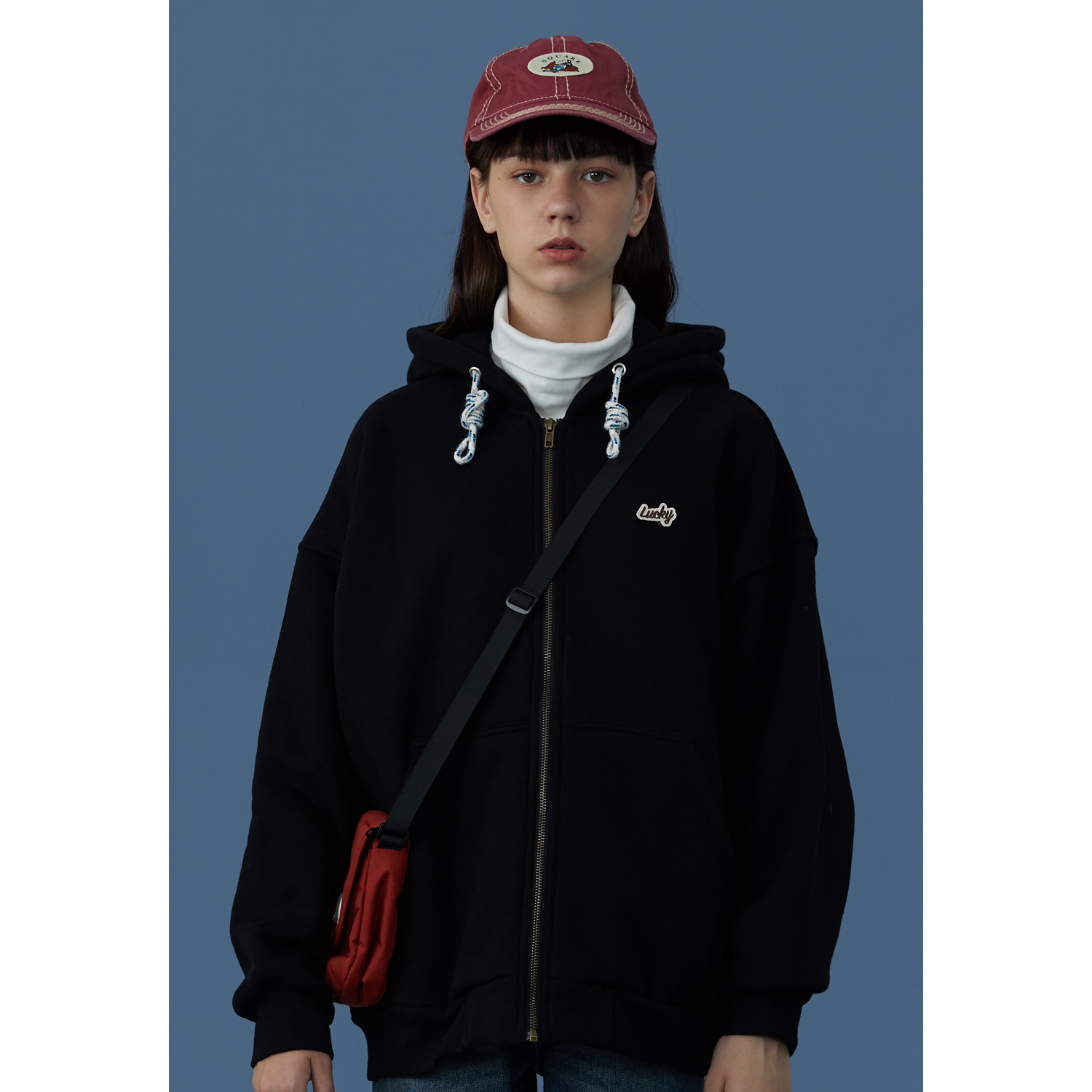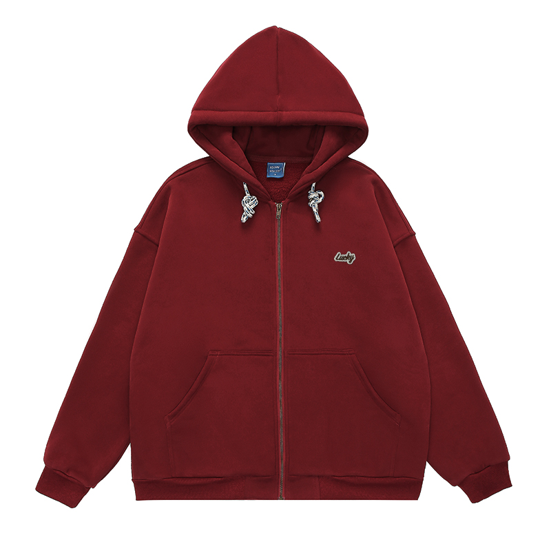 square houlest Spring national tide wild embroidery cardigan jacket couple's hooded pullover pure cotton sweater