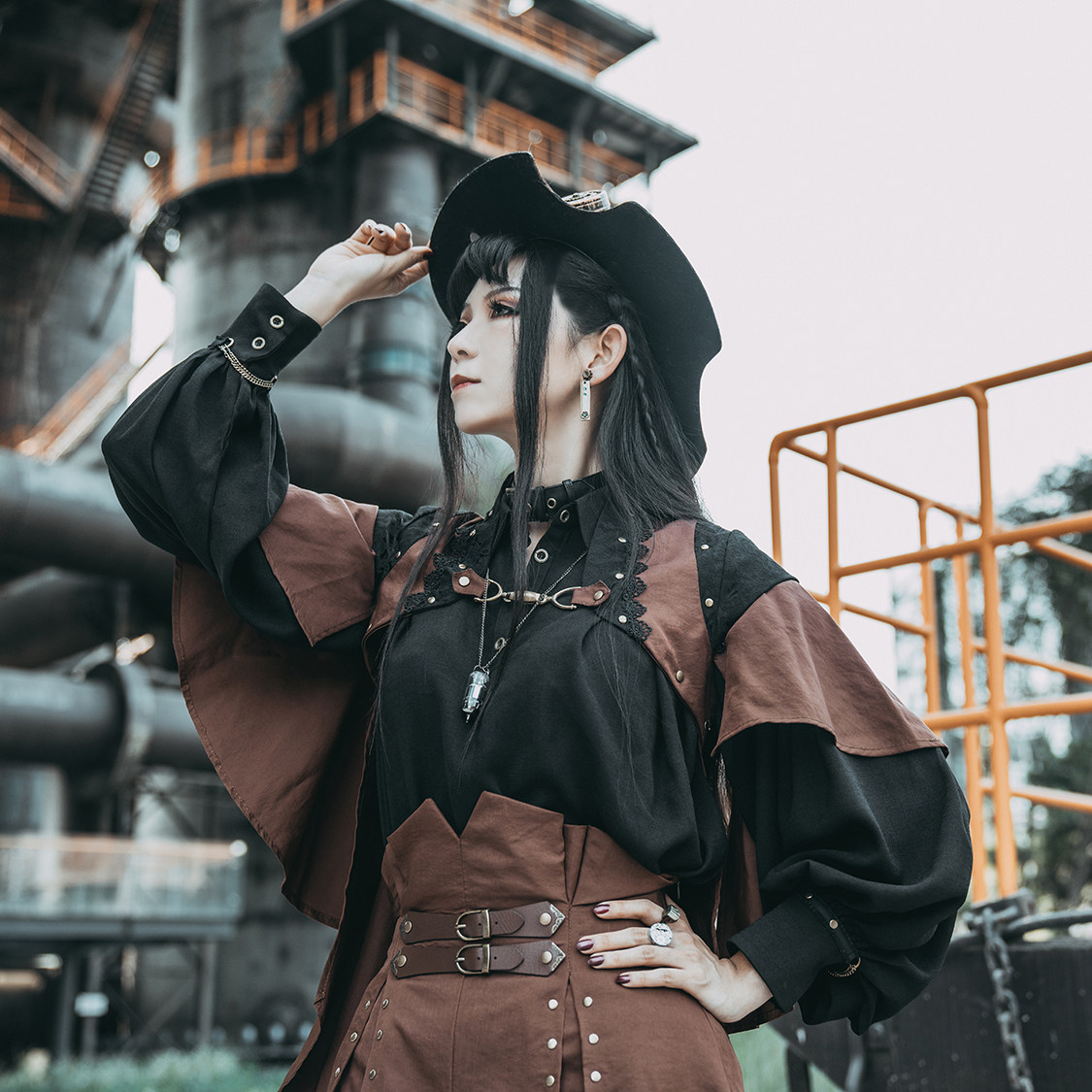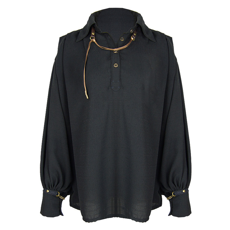 Mr Yi's steam continental vintage pirate wind Unisex Black Chiffon loose shirt long sleeve top