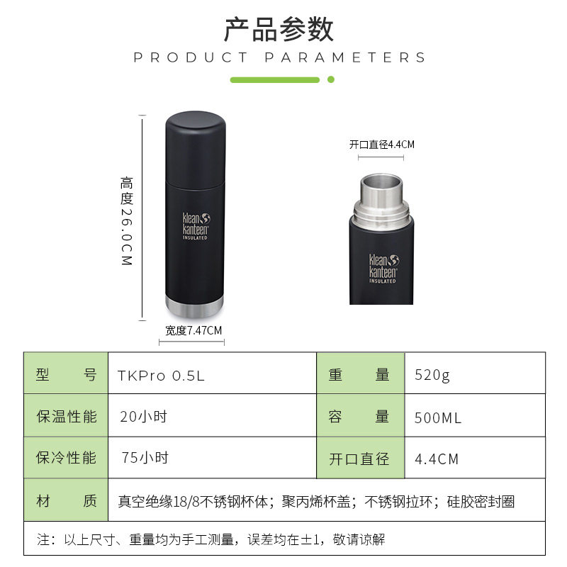 kleankanteen thermos cup large capacity stainless steel water cup men and women car outdoor kettle 500ml