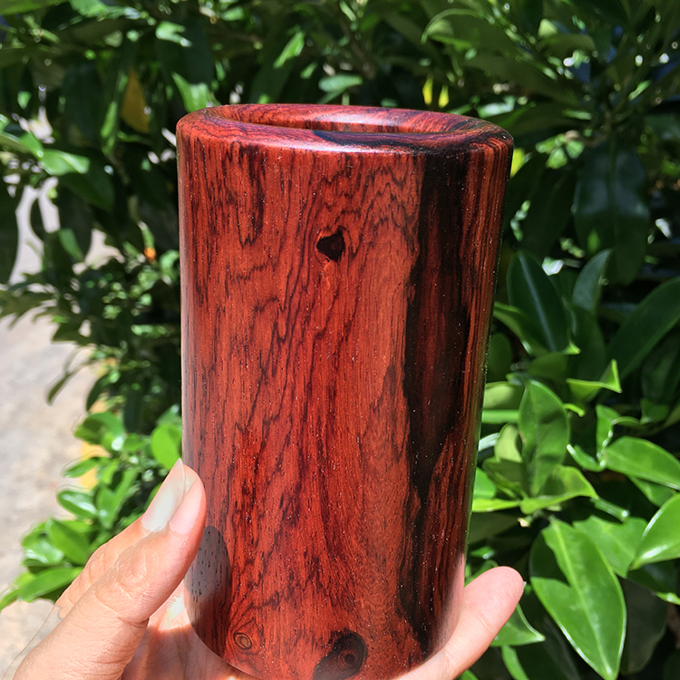 Red Wood Pen Holder Burmese Red Acid Branches Wood Tea Table Containing Students Collection Landscape Ghost Face Pattern Wooden Office Tea Drum