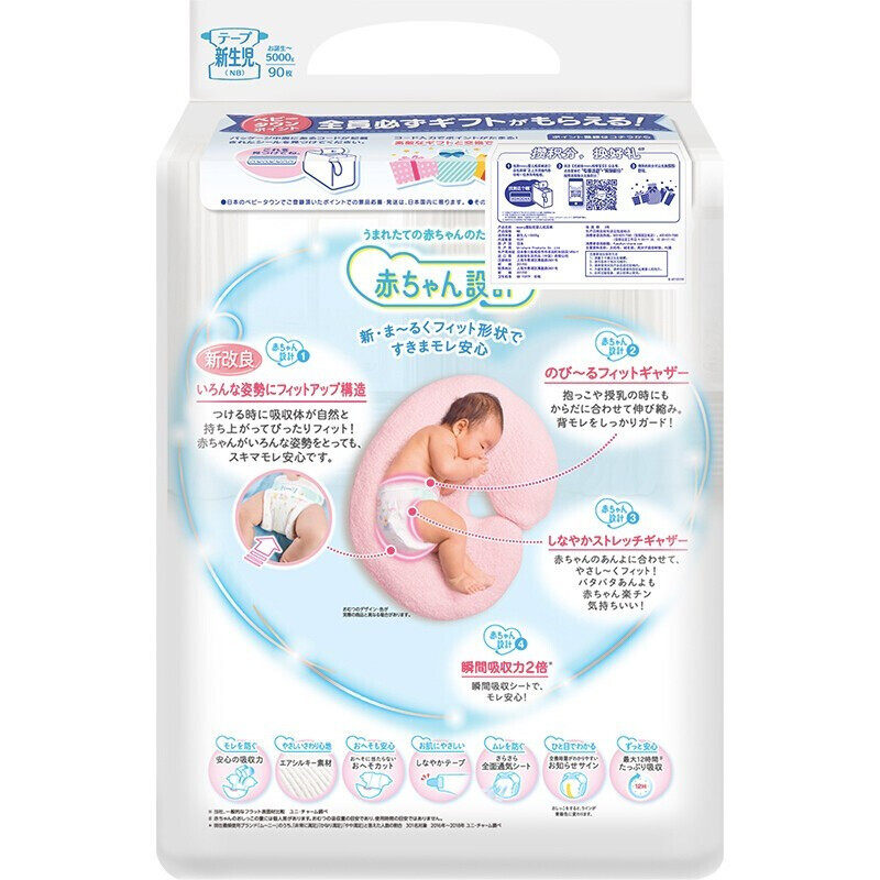 Imported Moony Yunie Canja Summer Newborn Baby Paper Diaper NB Code 90 beginner ultra-thin breathable urine not wet