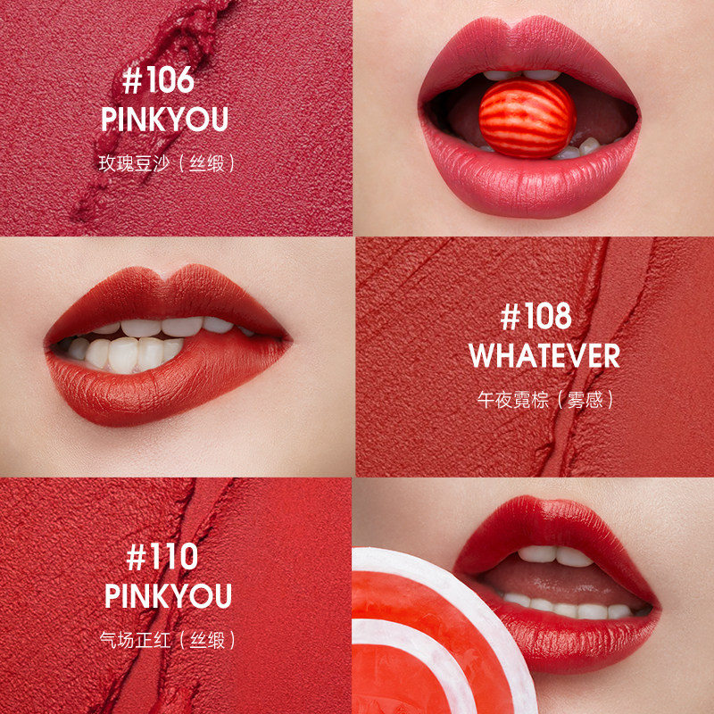 101 Vitality Pink Eggplant 102 Qi Coral 103 With Sexual Mist Orange 104 Incandescent Peach 105 Heartbeat Nude Powder 106 Rose Bean Paste 107 Burst Lamp Berries 108 Afternoon