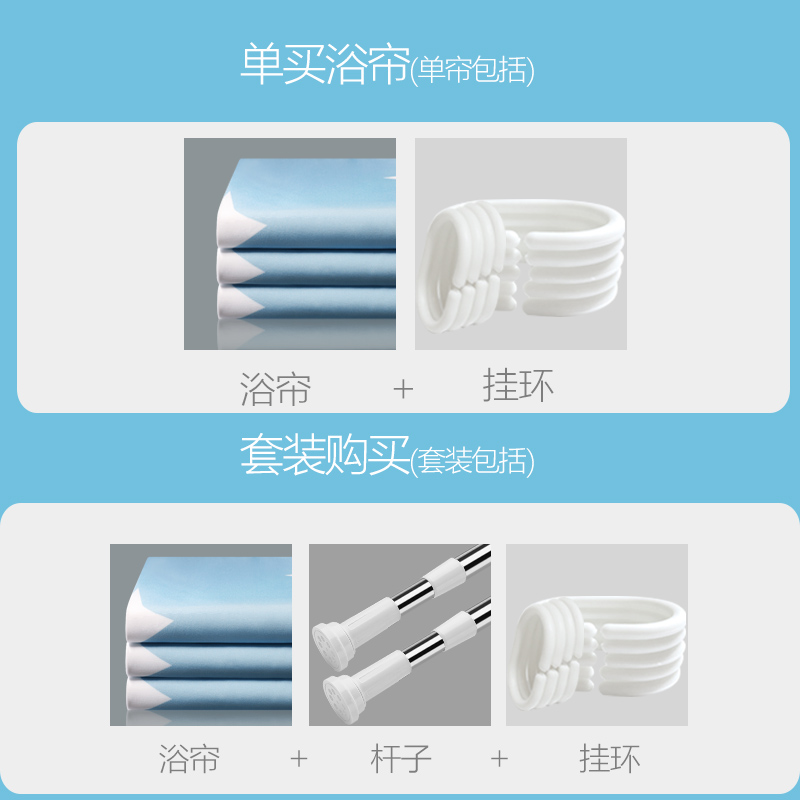 Blue Star Single Bath Curtain + Ring + Strap Blue Star Set Shower Curtain + Telescopic Rod + Ring + Strap