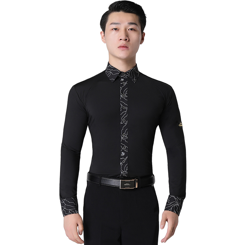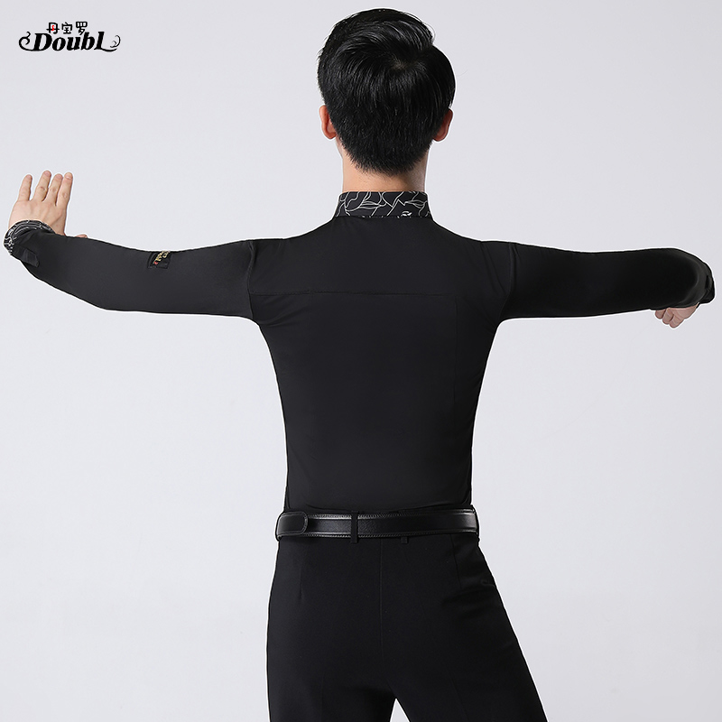 Danboro modern dance tops Waltz dance costume national standard men's Latin dance competition suit black long-sleeved shirt