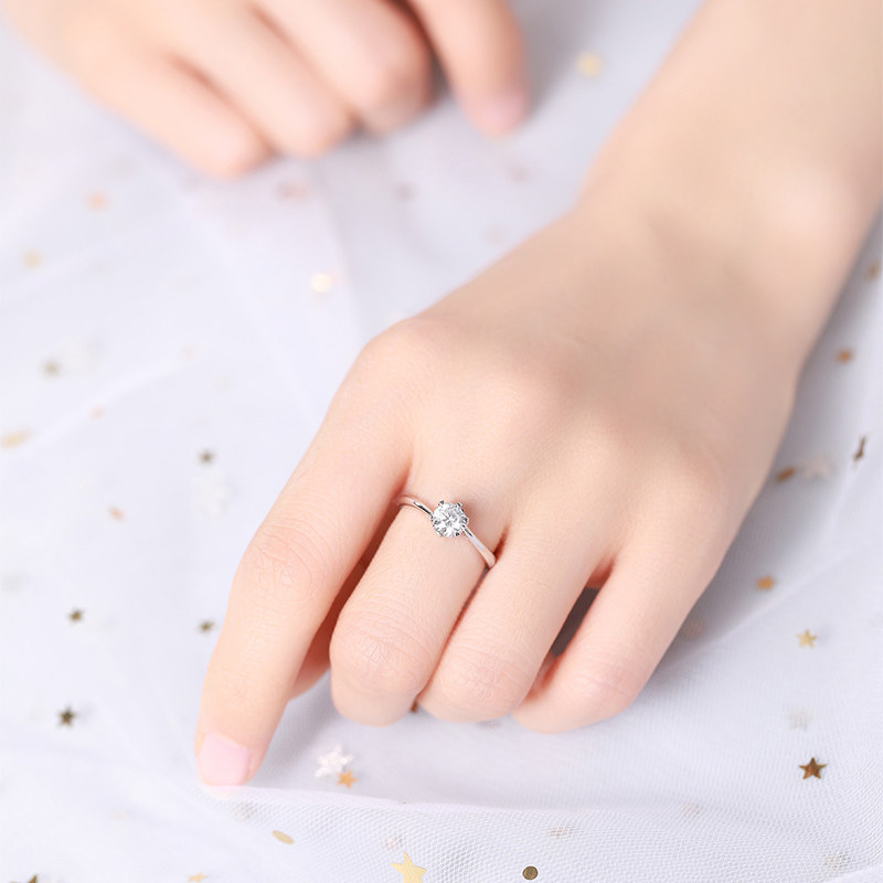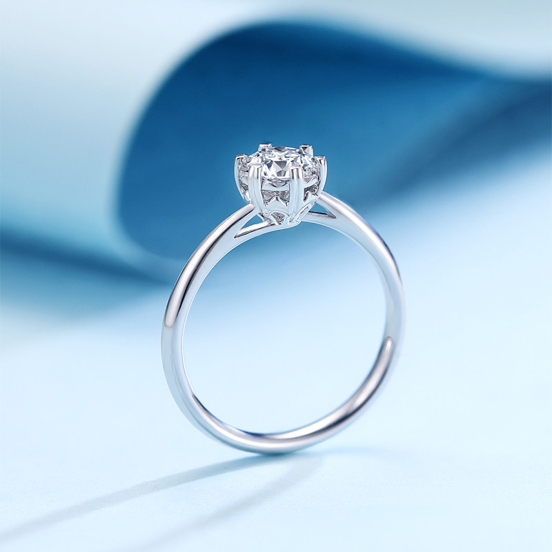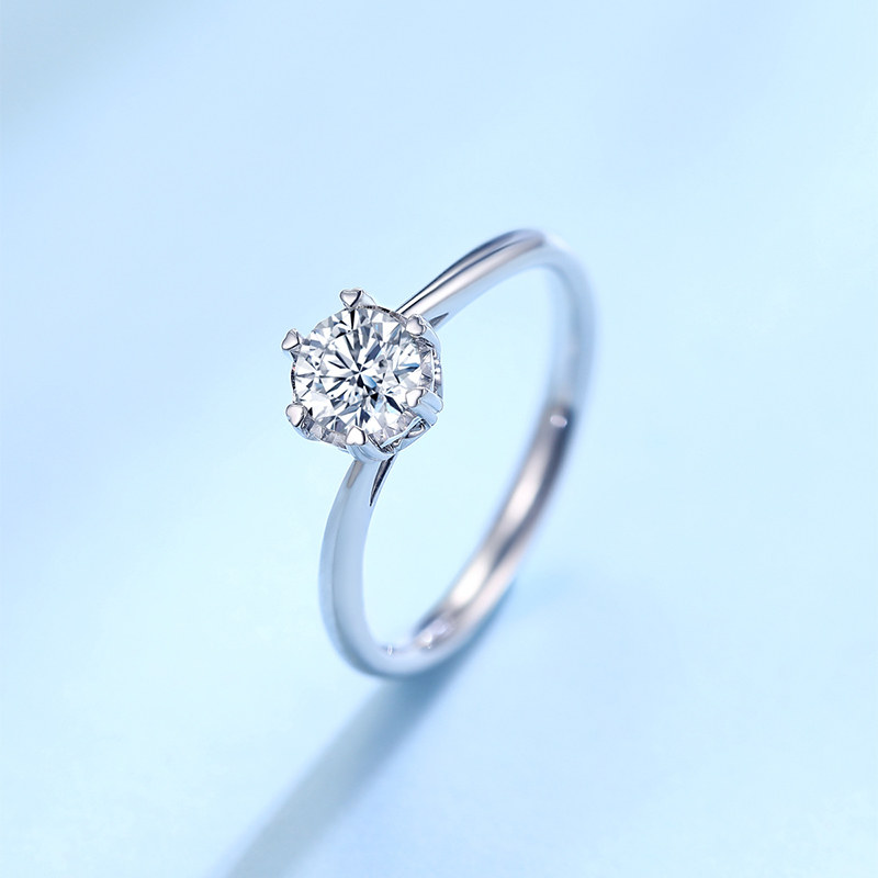 Zokai diamond ring pure lovers white 18k gold six-claw simple twist arm diamond ring Wedding engagement ring Female ring