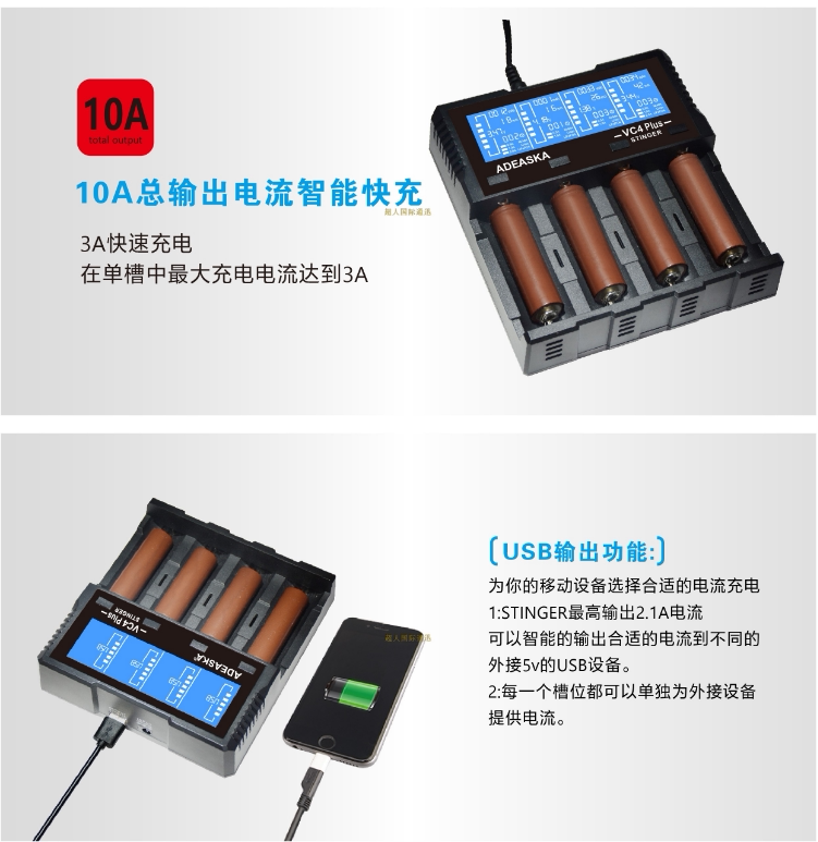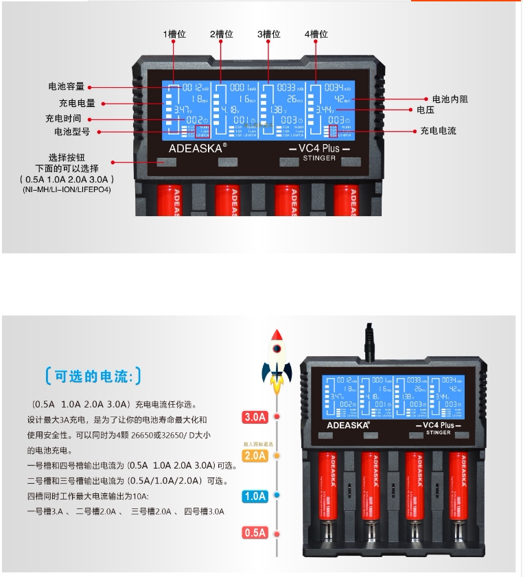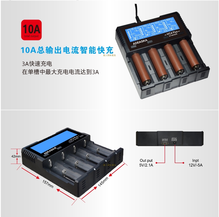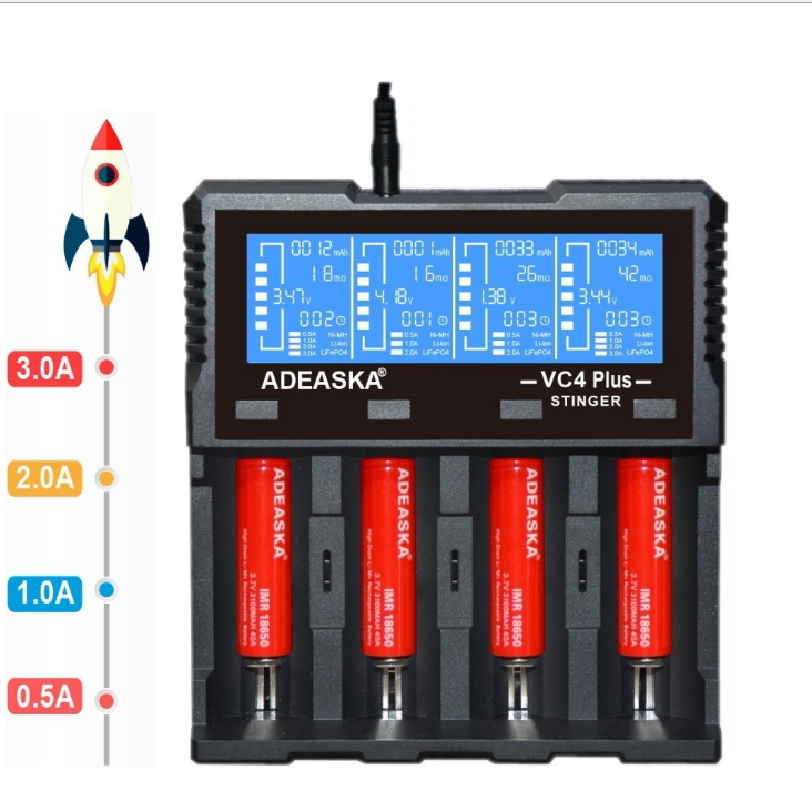 ADEASKA VC4PLUS Smart Charger compatible with 18650 26650 NiMH lithium BATTERY charging 4 slots