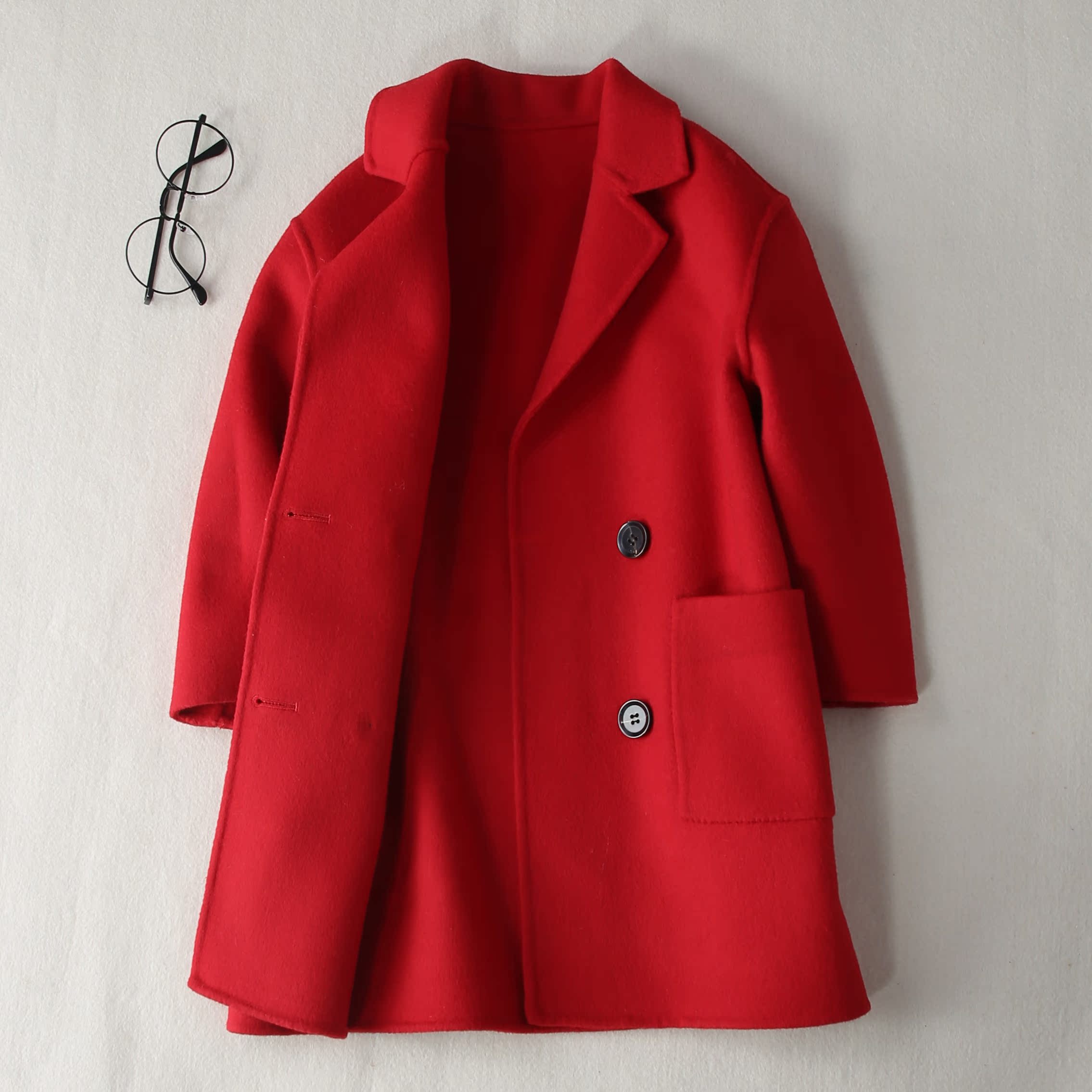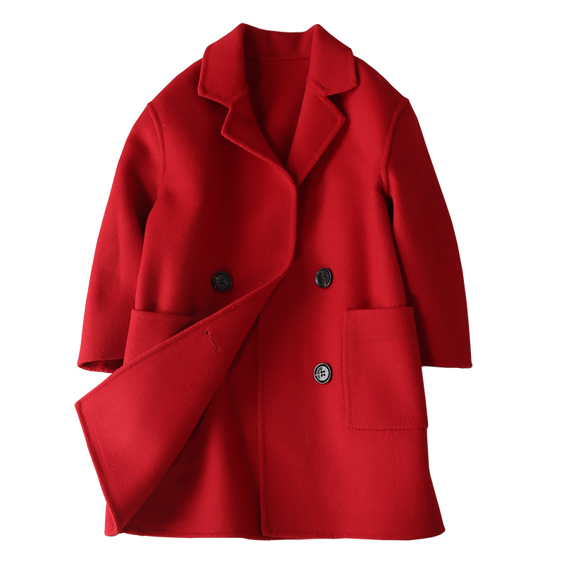 Boy girl bifacial cashmere big coat 2021 new autumn and winter children, long version of children's clothing jacket tide
