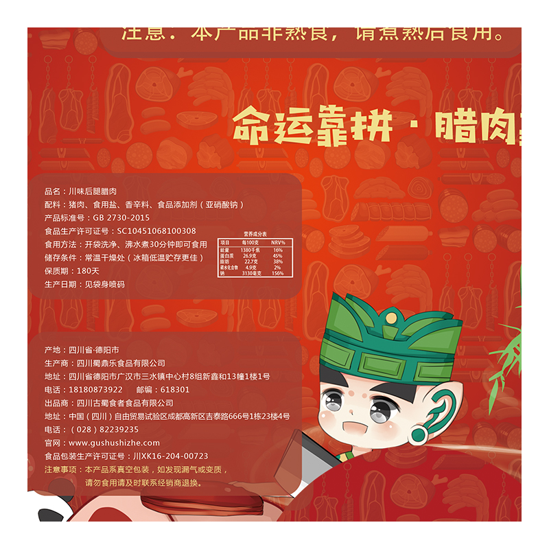 Sichuan bacon Sichuan flavor hind legs five flowers pure thin bacon Qingcheng Mountain Beichuan Chengdu old bacon farm homemade specialty