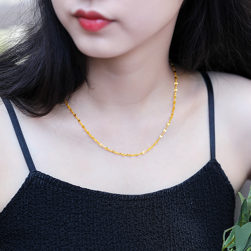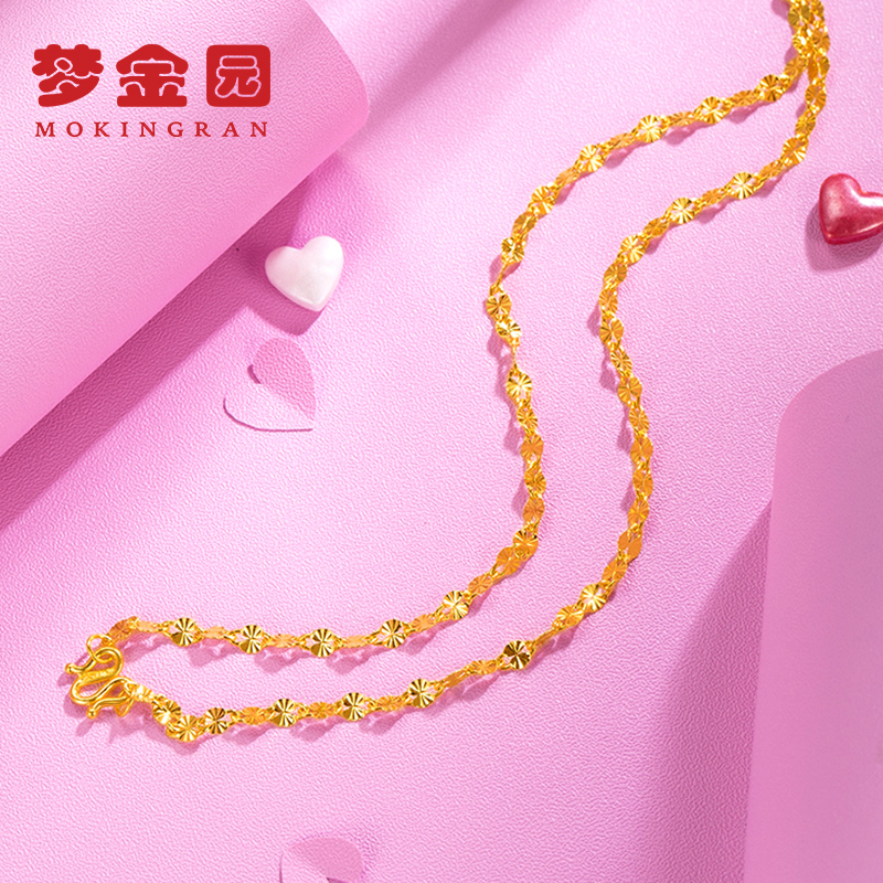 Dream gold garden gold necklace women's football gold 999 Joker pattern lip chain lock bone chain element chain new gift