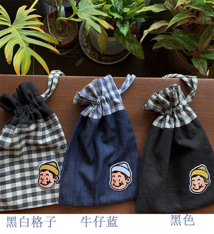 Denim blue (cloth bag color) black (cloth bag color) black and white plaid (cloth bag color)