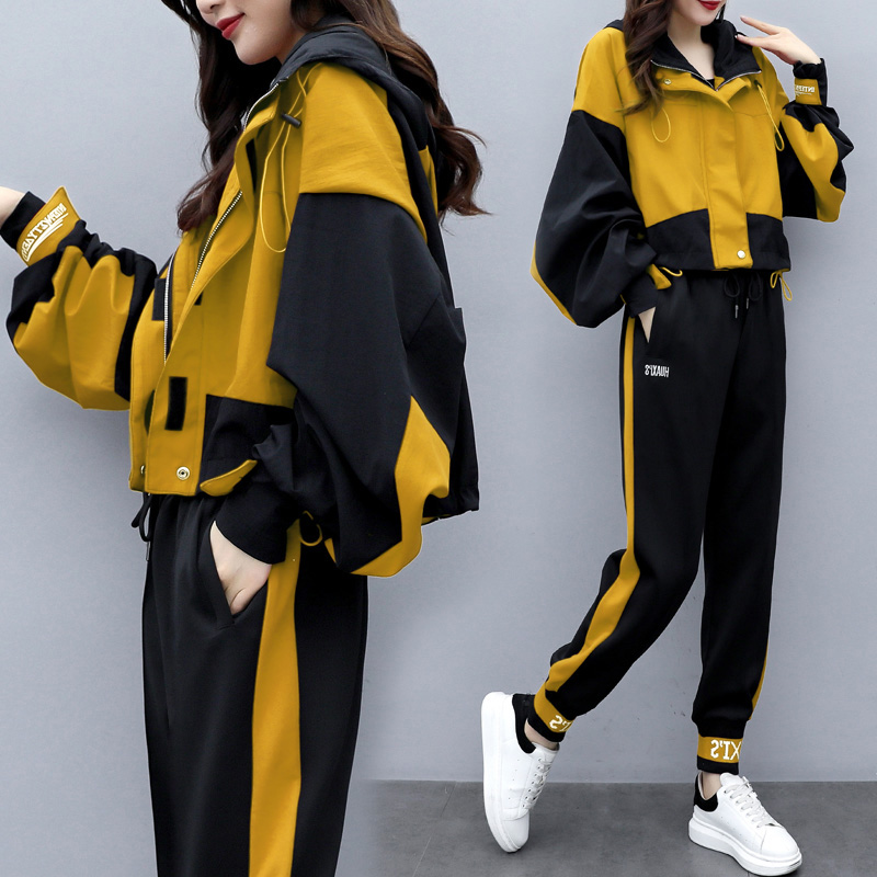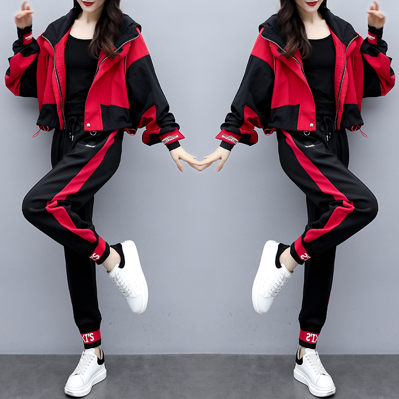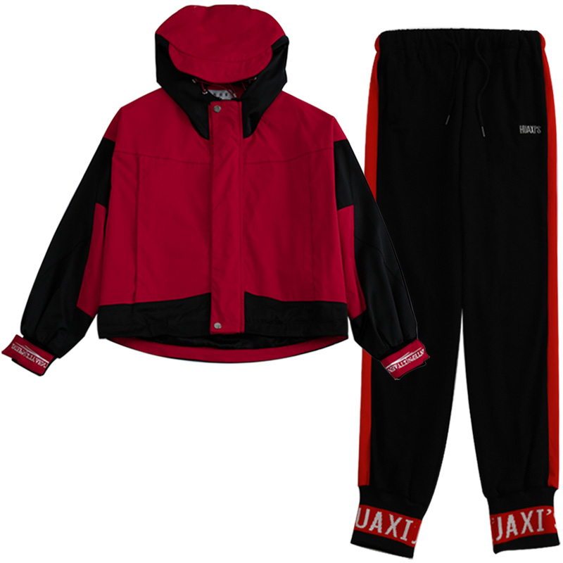 Temperament Casual Red Suit Autumn 2022 European and Western Stir-fried Street Two-piece Set Autumn and Winter Plus Velvet Sportswear Women's Clothes